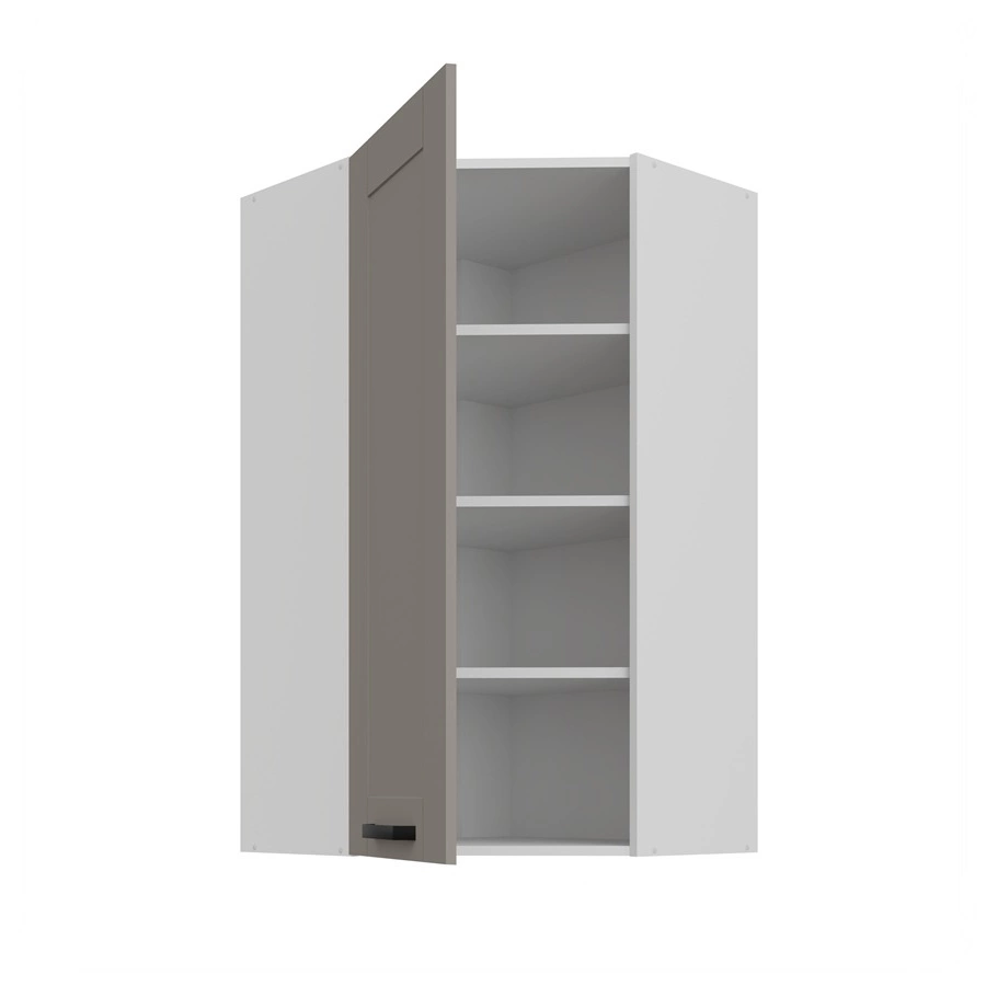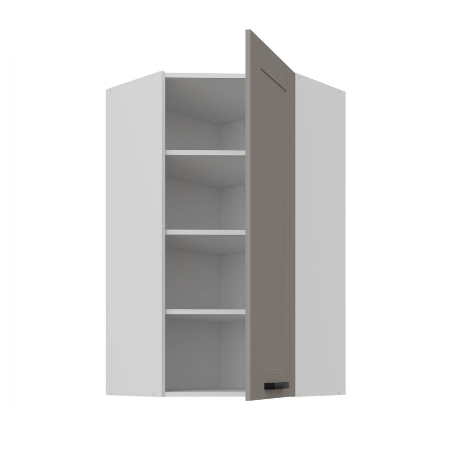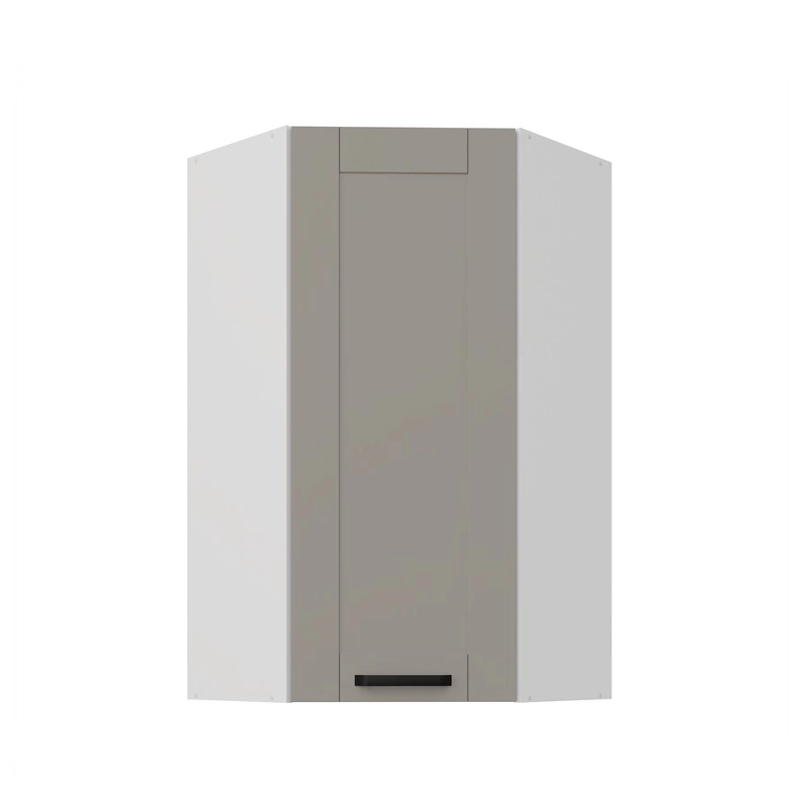 Szafka kuchenna narożna wisząca Ponza w kolorze szary beż / biały należy do kategorii mebli kuchennych modułowych, z których można utworzyć dowolne zestawy.