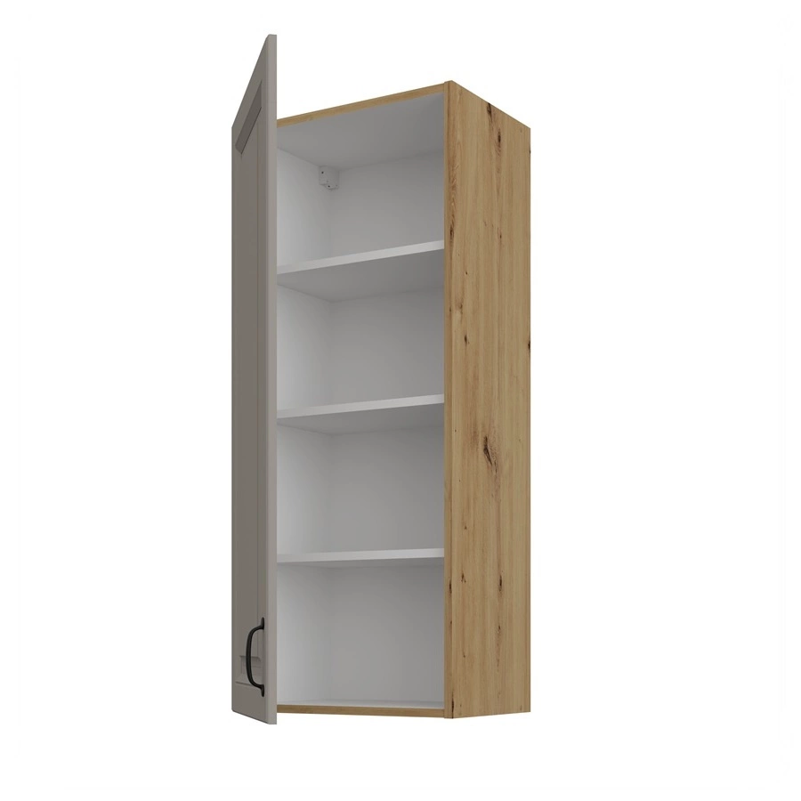 Szafka kuchenna wisząca Delos w kolorze szary beż / dąb artisan należy do kategorii mebli kuchennych modułowych, z których można utworzyć dowolne zestawy.