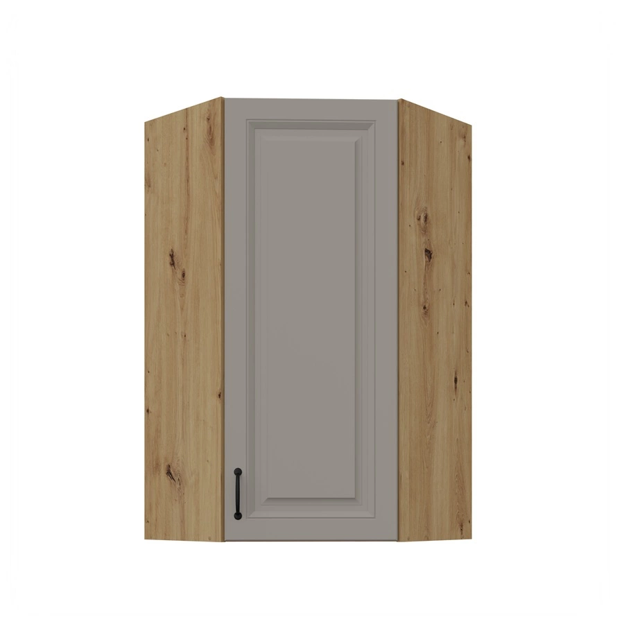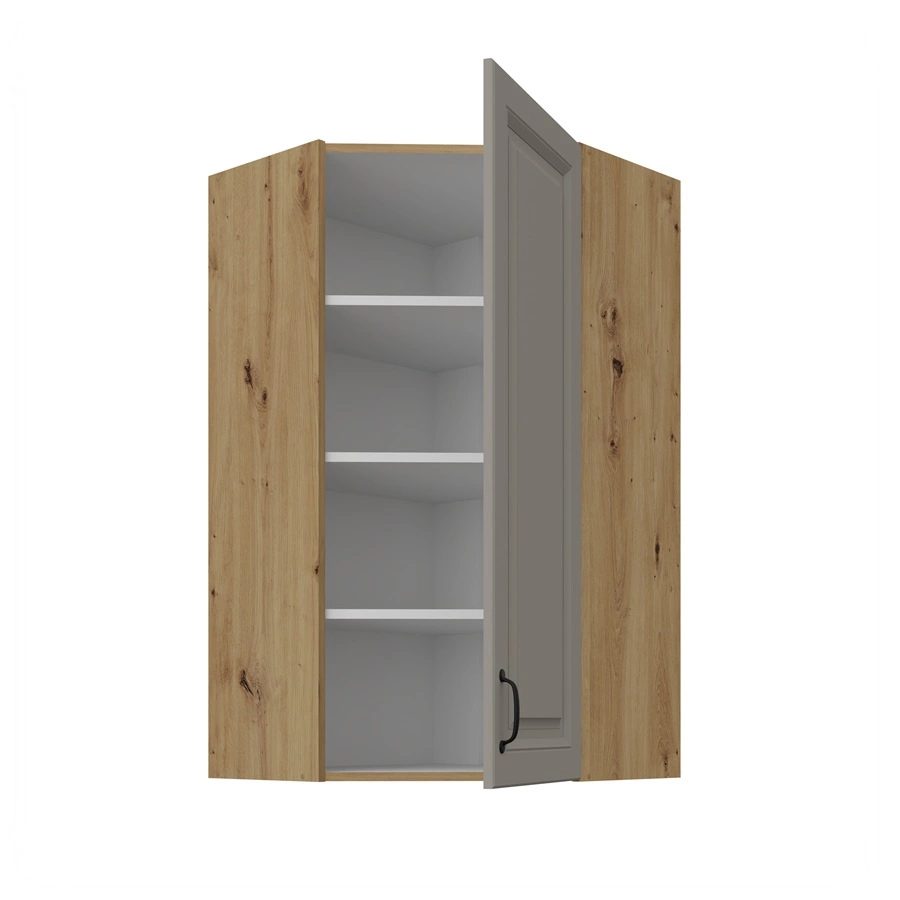 Szafka kuchenna narożna wisząca Delos w kolorze szary beż / dąb artisan należy do kategorii mebli kuchennych modułowych, z których można utworzyć dowolne zestawy