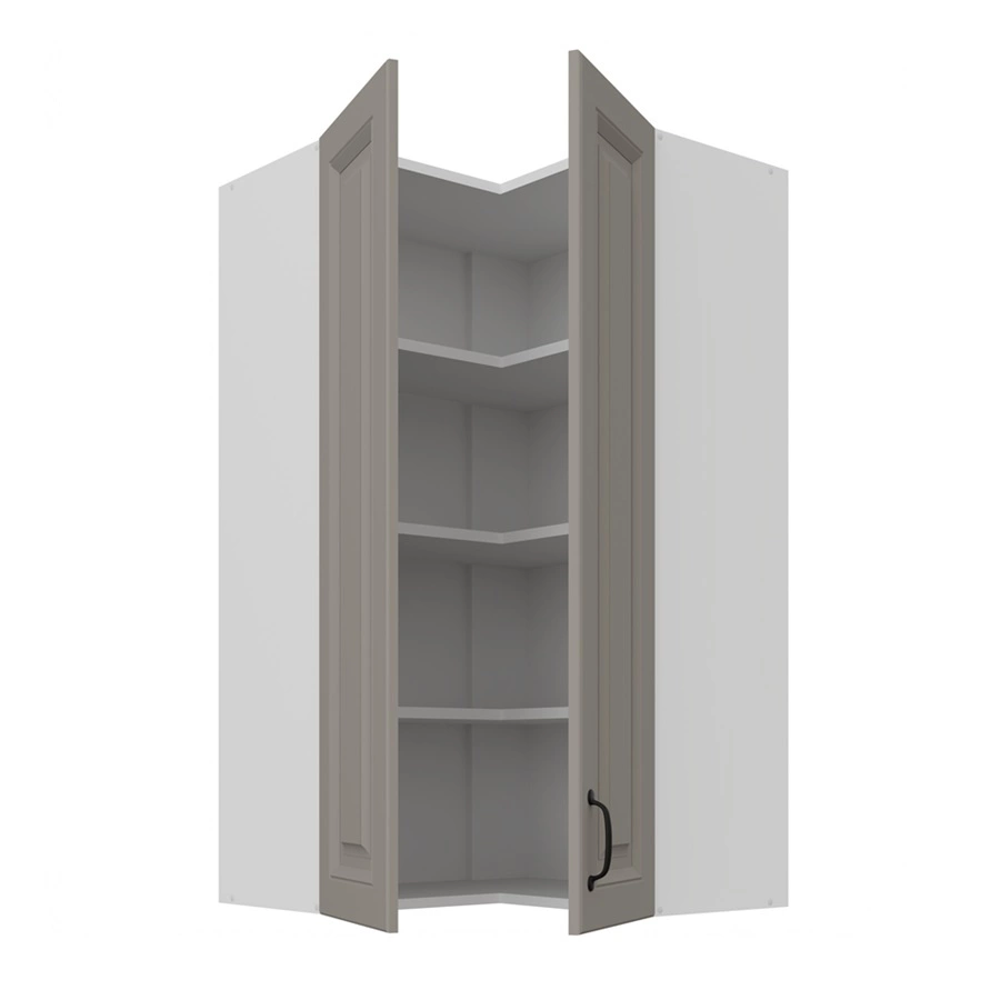 Szafka kuchenna narożna wisząca Kastos w kolorze szary beż / biały należy do kategorii mebli kuchennych modułowych, z których można utworzyć dowolne zestawy.