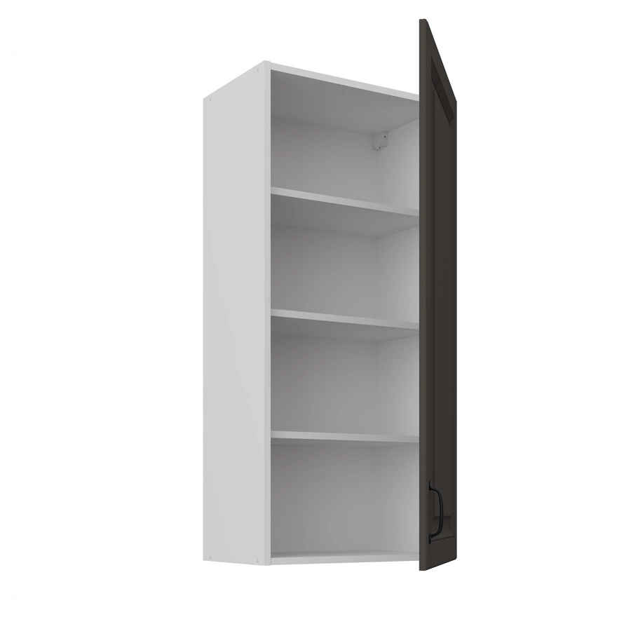 Trzy półki można wyciągnąć i uzyskać miejsce na wysokie przedmioty. Drzwi są uniwersalne i można je zamontować po prawej lub po lewej stronie. Standardowym wyposażeniem szafki kuchennej są zawiasy z systemem cichego domykania. Spowalniacze zwiększają komfort i bezpieczeństwo użytkowania mebli.