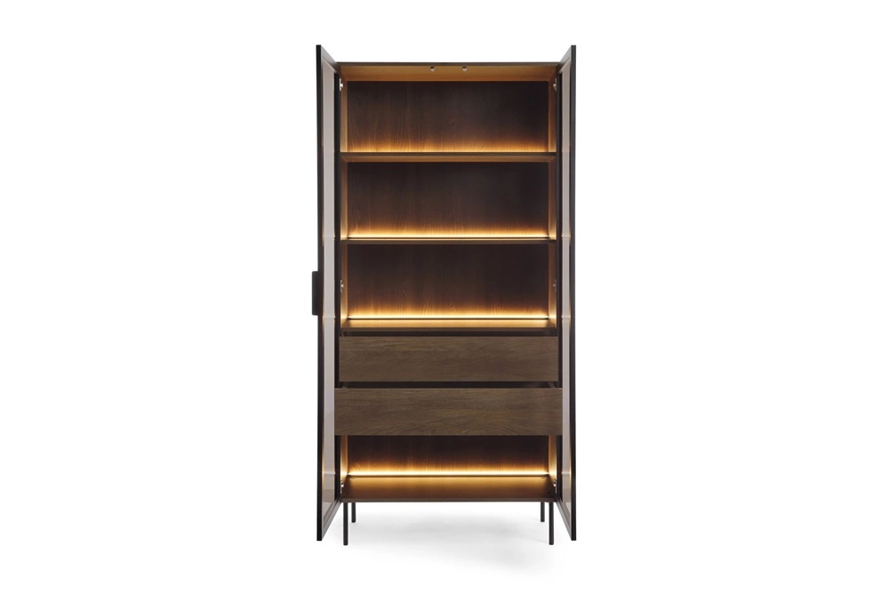 Witryna Lumi 92 cm dąb dunin designerska witryna szkło antisol wewnętrzne szuflady z systemem push to open oświetlenie LED