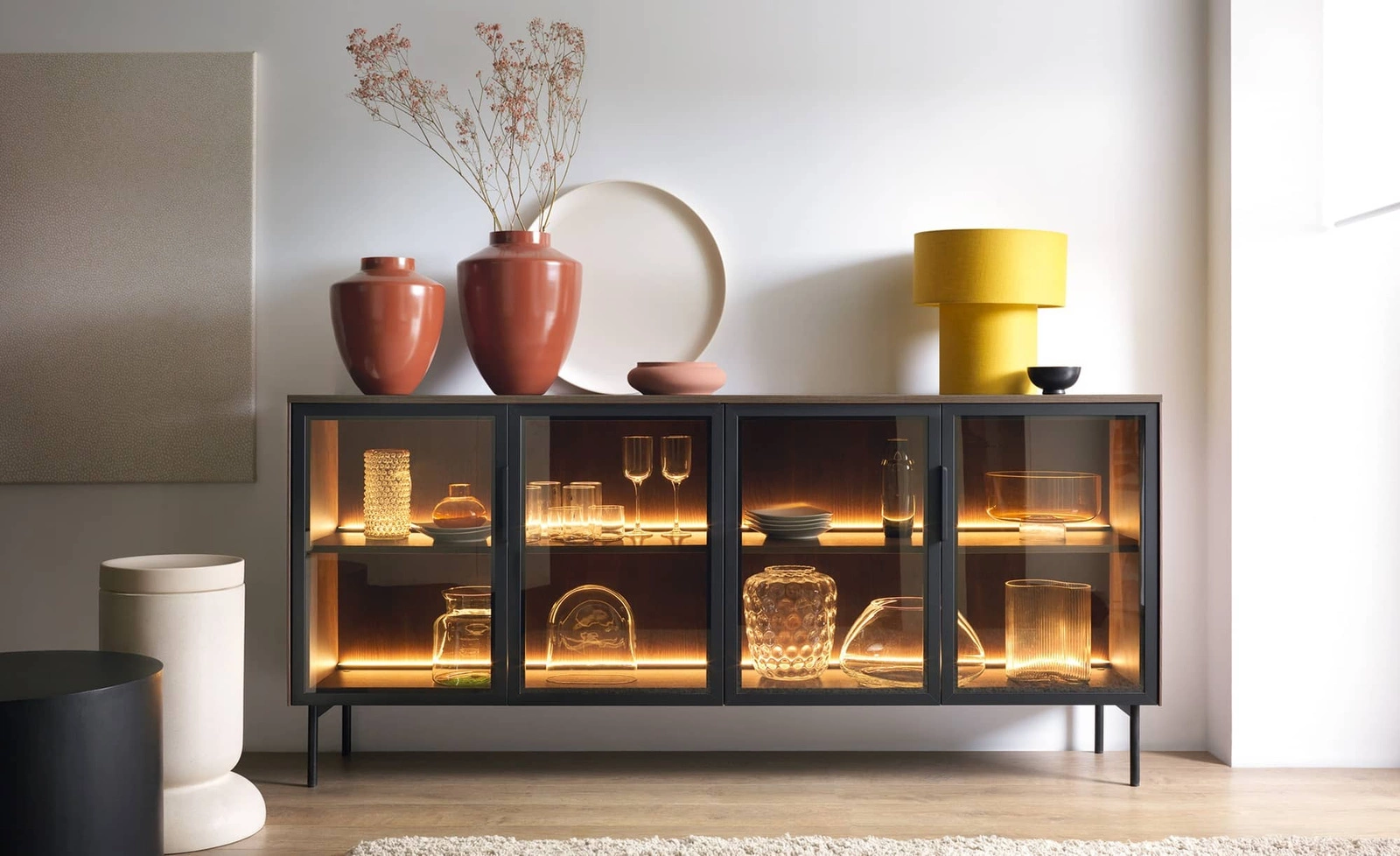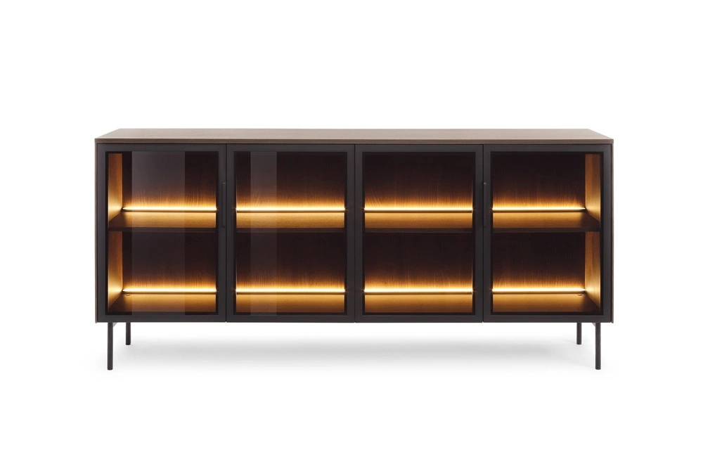 - Komoda Lumi to estetyczny element wyposażenia nadający pomieszczeniu osobistego charakteru. Nietuzinkowe fronty ze szkłem antisol uwydatnia subtelne oświetlenie ledowe. Całości dopełniają czarne uchwyty krawędziowe i wysokie, metalowe nogi.