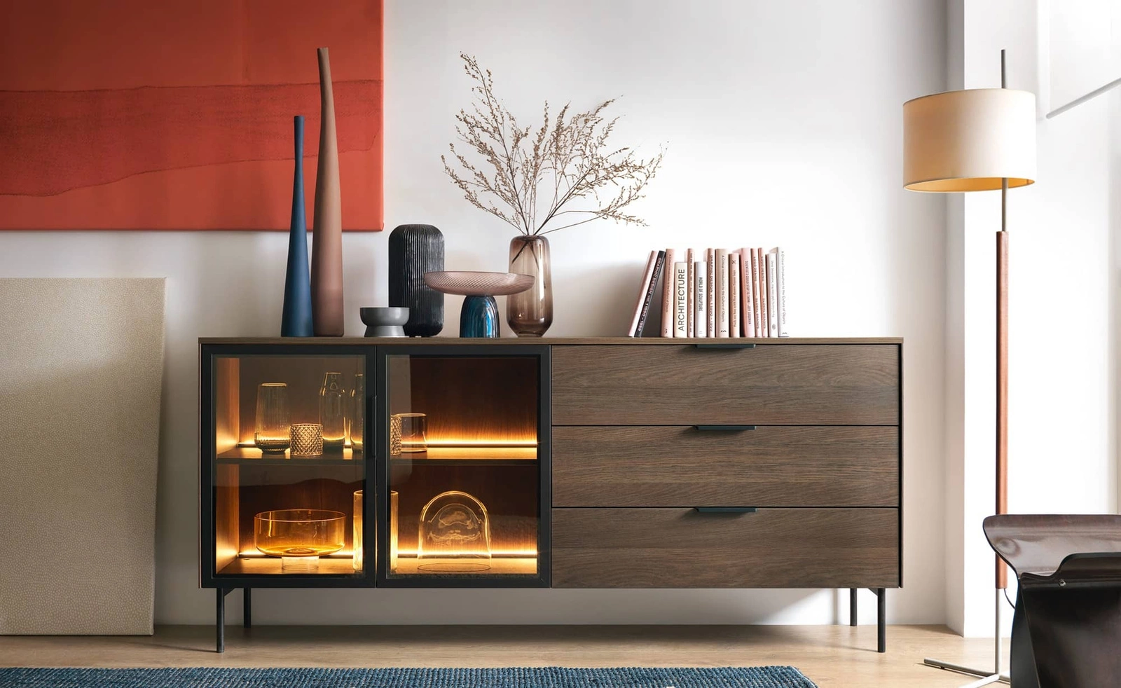 - Komoda Lumi to estetyczny element wyposażenia nadający pomieszczeniu osobistego charakteru. Nietuzinkowe fronty ze szkłem antisol uwydatnia subtelne oświetlenie ledowe. Całości dopełniają czarne uchwyty krawędziowe i wysokie, metalowe nogi.