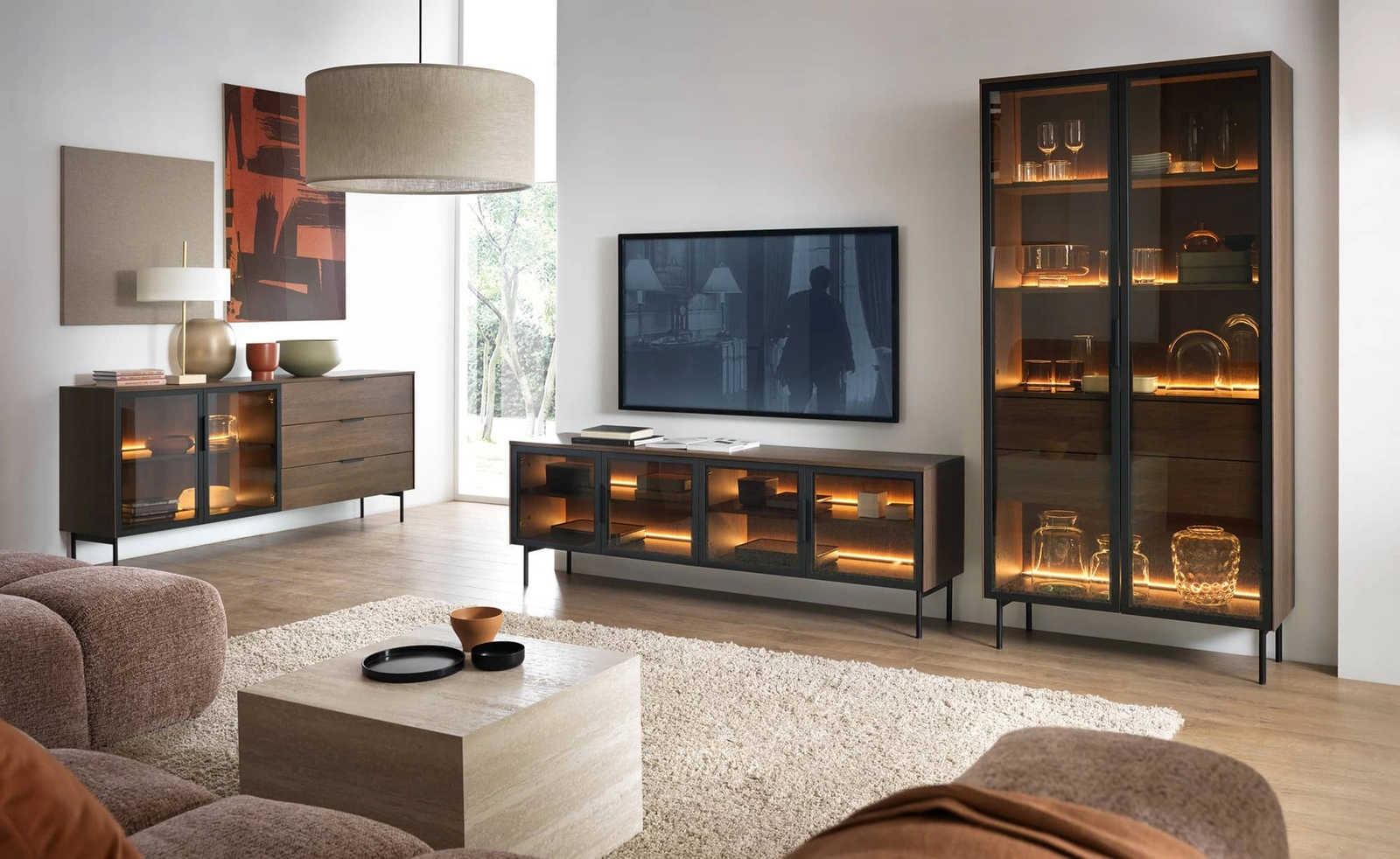 Szkło hartowane na frontach zabezpieczy zawartość szafki przed kurzem i uszkodzeniami, a jednocześnie umożliwi wyeksponowanie ulubionych przedmiotów. Dąb dunin doskonale odnajdzie się w modnych aranżacjach, dzięki czemu szafki RTV Lumi świetnie sprawdzą się w przestronnych, jasnych wnętrzach w stylu nowoczesnym. Szafki RTV nowoczesne oraz szafki RTV industrialne o eleganckim wykończeniu idealnie dopasują się do każdej aranżacji.