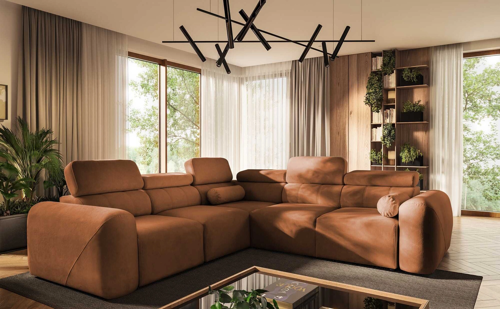 Narożnik Cantare III w kolorze ceglastym to niezwykle funkcjonalny mebel o stylowym wykończeniu.