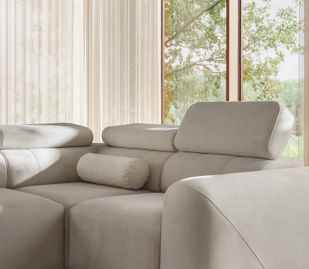 Dodatki tego mebla, które docenią wszyscy użytkownicy to elektrycznie podnoszony podnóżek, regulowane zagłówki oraz funkcja spania.