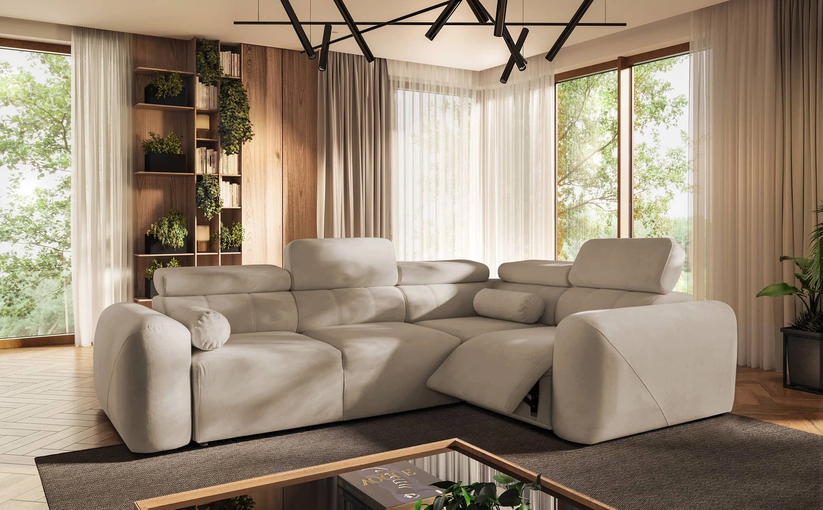 Dodatki tego mebla, które docenią wszyscy użytkownicy to elektrycznie podnoszony podnóżek, regulowane zagłówki oraz funkcja spania.