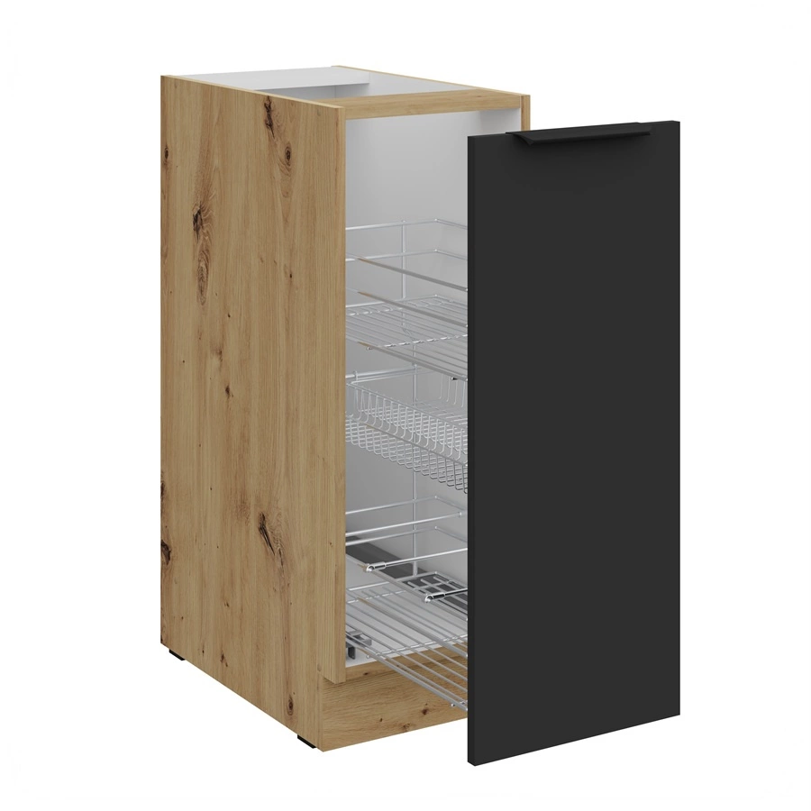 Szafka kuchenna Alatri Ar jest wyposażona w dwupoziomowy, metalowy kosz cargo