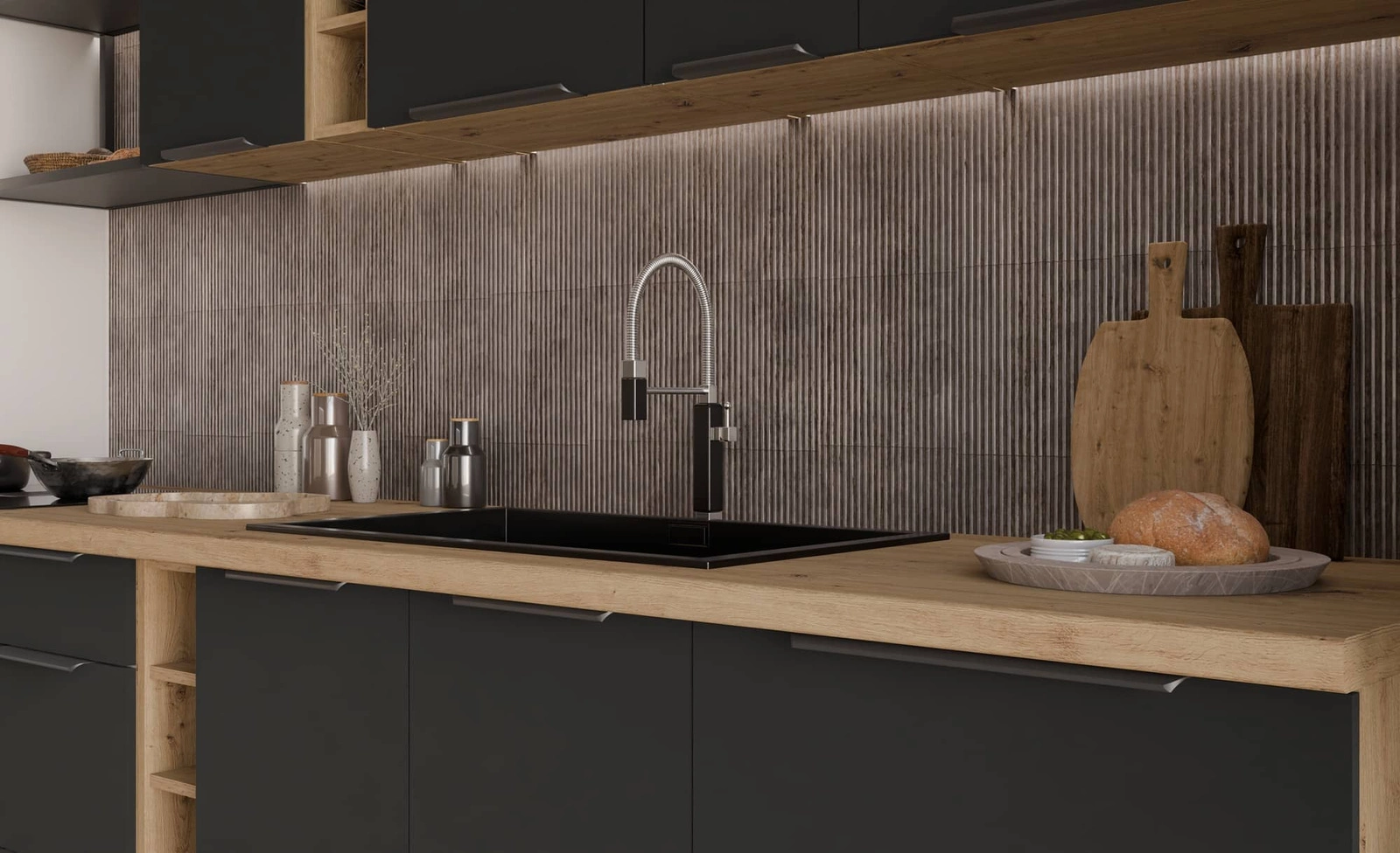 Szafka kuchenna z kolekcji Alatri Ar została zaprojektowana z myślą o wszystkich, którzy cenią sobie estetykę oraz poszukują funkcjonalnych rozwiązań do swojej kuchni. Proste bryłygładkie powierzchnie oraz wyjątkowy kolor frontów połączony z eleganckim odcieniem korpusów sprawia, że szafki kuchenne Alatri Ar wpasują się we wnętrze w każdym stylu. Meble kuchenne Alatri Ar charakteryzują się solidną jakością wykonania, a także użytkowym wzornictwem. Dodatkową zaletą mebli kuchennych Alatri Ar są fronty wykonane w innowacyjnej technologii Anti Fingerprint. Użyta w produkcji mebli technologia zapobiega powstawaniu widocznych śladów dotyku oraz innych zabrudzeń pozwalając zachować perfekcyjny wygląd szafki kuchennej na lata. Meble modułowe do kuchni to produkty wykonane w trosce o komfort podczas codziennego użytkowania i długoletni, elegancki wygląd.