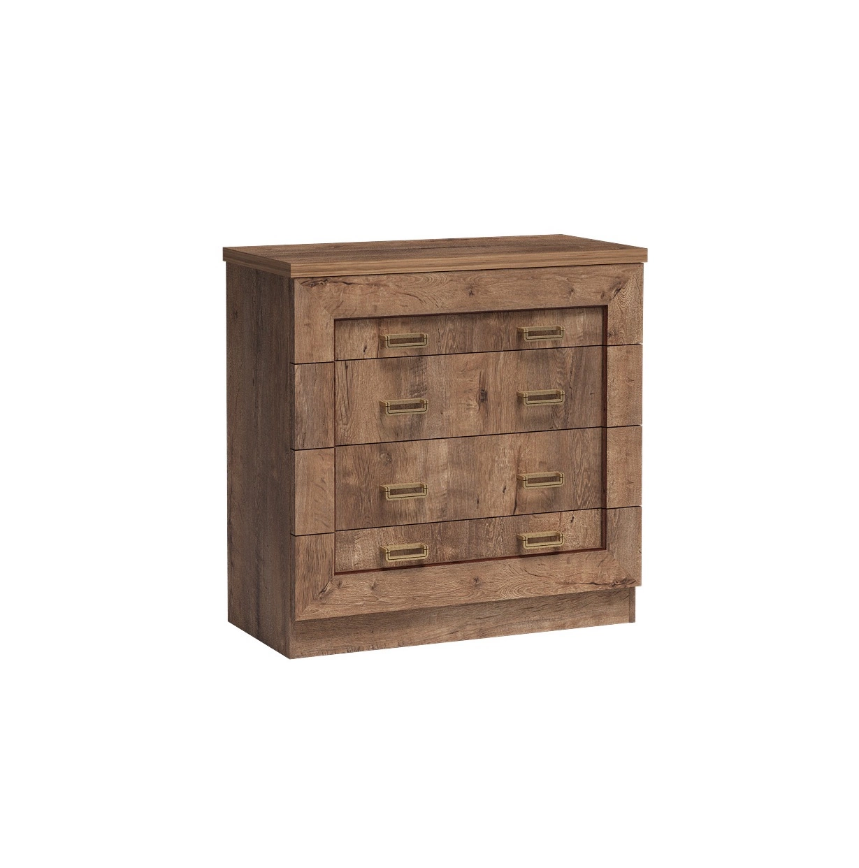 Komoda z szufladami z kolekcji Tade zachwyci wszystkich miłośników wyrafinowanych aranżacji. Modny dąb lefkas z widoczną delikatną strukturą drewna, zyskuje bardziej wyrazisty i wyjątkowy urok. Elegancki kształt mebli oraz uchwyty wykonane z metalu w kolorze złotym to element, który przyciągają wzrok i sprawia, że całość prezentuje się bardzo gustownie. Dekoracyjna ramka znajdująca się na froncie komody sprawia, że całość prezentuje się niezwykle okazale oraz szykownie. Komoda z szufladami Tede z powodzeniem odnajdzie się we wnętrzach w stylu klasycznym czy rustykalnym.