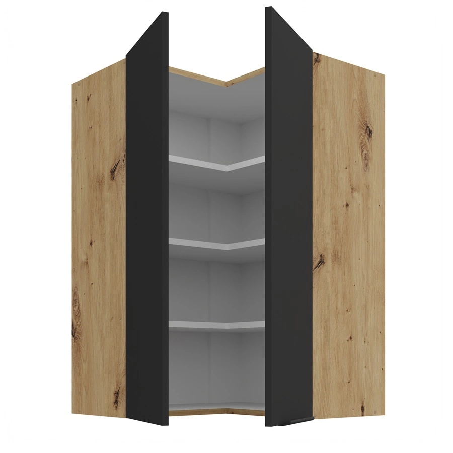 Szafka kuchenna narożna wisząca Alatri Ar w kolorze dąb artisan / czarny należy do kategorii mebli kuchennych modułowych, z których można utworzyć dowolne zestawy.