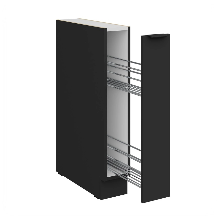 Szafka kuchenna cargo 15 cm Alatri Bl w kolorze czarnym należy do kategorii mebli kuchennych modułowych, z których można utworzyć dowolne zestawy.