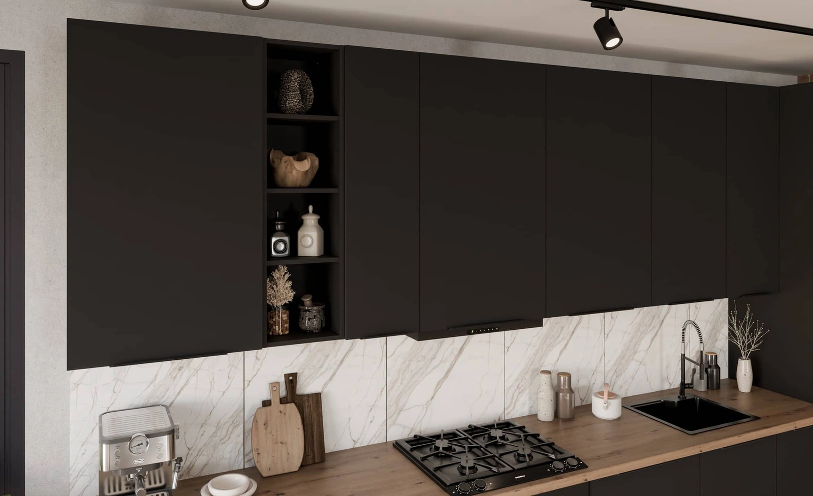 Szafka kuchenna wisząca 40 cm Alatri Bl w kolorze czarnym należy do kategorii mebli kuchennych modułowych, z których można utworzyć dowolne zestawy.