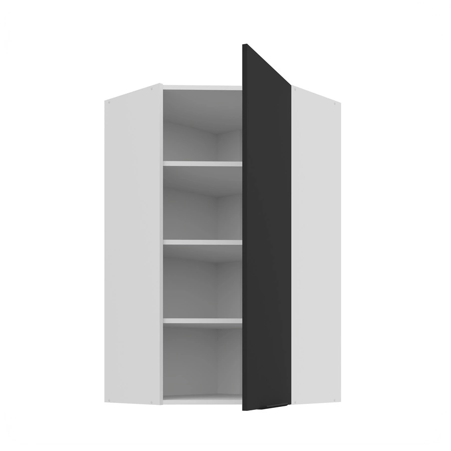 Szafka kuchenna narożna wisząca Alatri Wh w kolorze biały / czarny należy do kategorii mebli kuchennych modułowych, z których można utworzyć dowolne zestawy.
