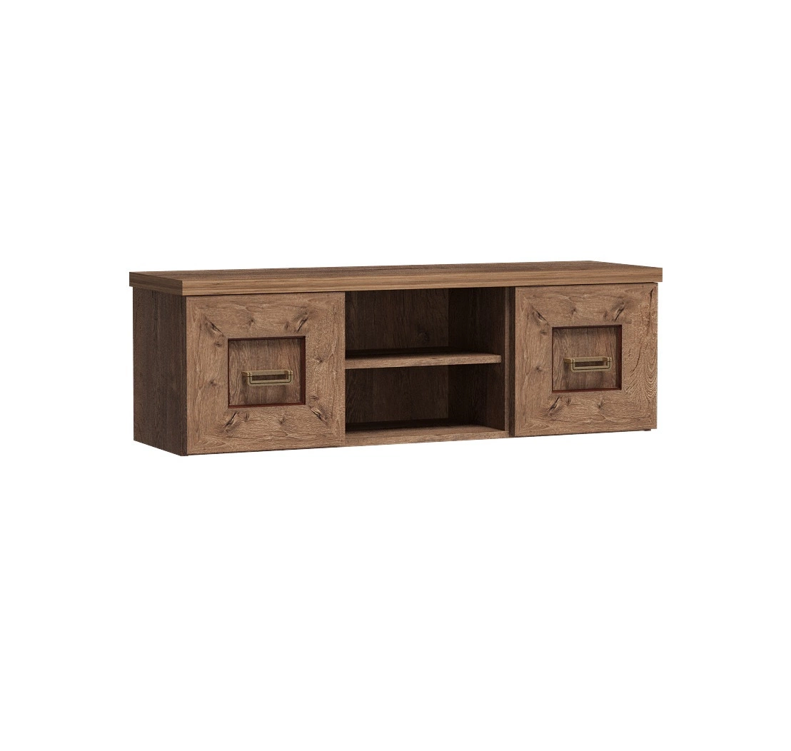 Szafka wisząca Tade 118 cm dąb lefkas oryginalny design praktyczna szafka na ścianę do salonu czy jadalni wzbogacona o metalowe złote uchwyty