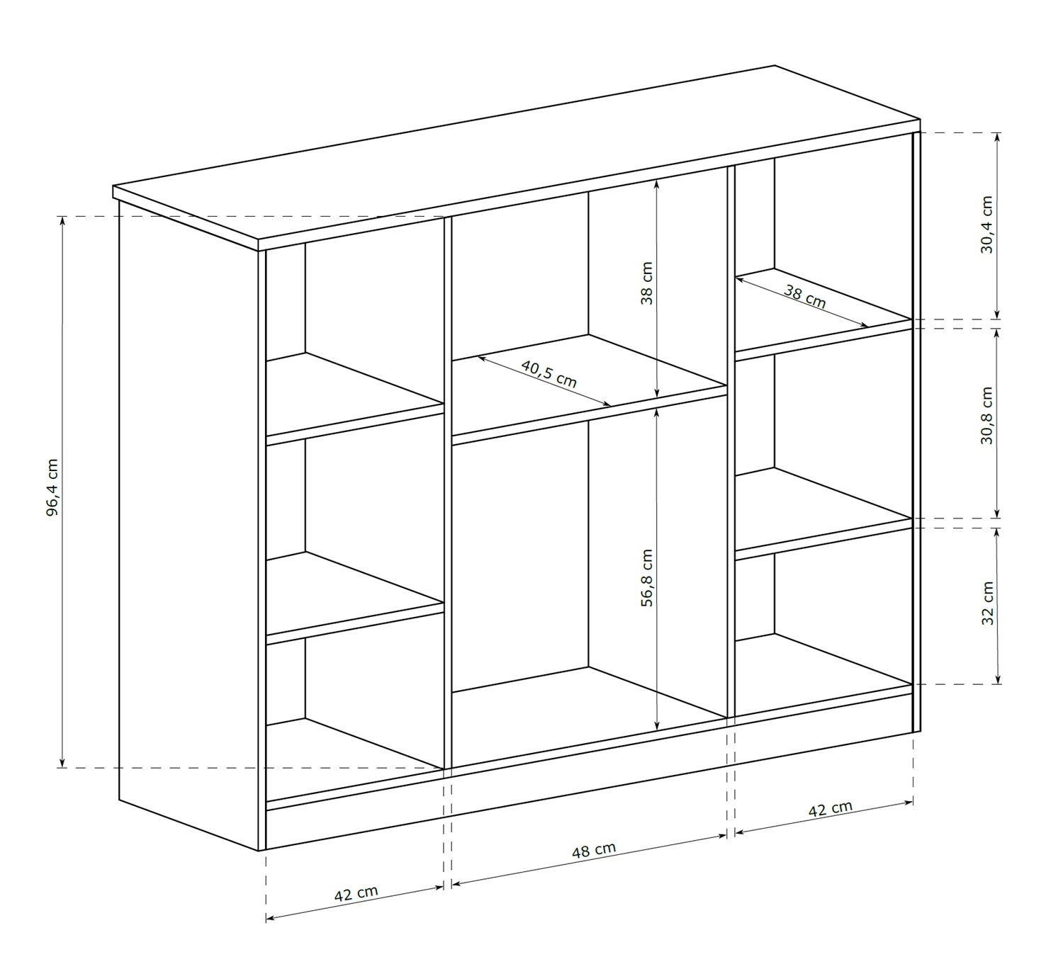 Komoda do salonu wykonana została z wysokiej jakości płyty laminowanej o grubości 16mm, która charakteryzuje się odpornością na wpływ czynników zewnętrznych takich jak obicia, uderzenia i niefortunne zadrapani. Wytrzymały blat komody o grubości 32mm to kolejny atut komody sprawdzi się jako miejsce na różne pamiątki. Przeszklony front pozwala na swobodne wyeksponowanie prezentowanych elementów stanowiących ozdobę pomieszczenia. Pojemne szuflady oraz zamykane szafki pomieszczą wszystkie rzeczy oraz niezbędne akcesoria. Przeszklone fronty wykonane są z bezpiecznego szkła hartowanego.