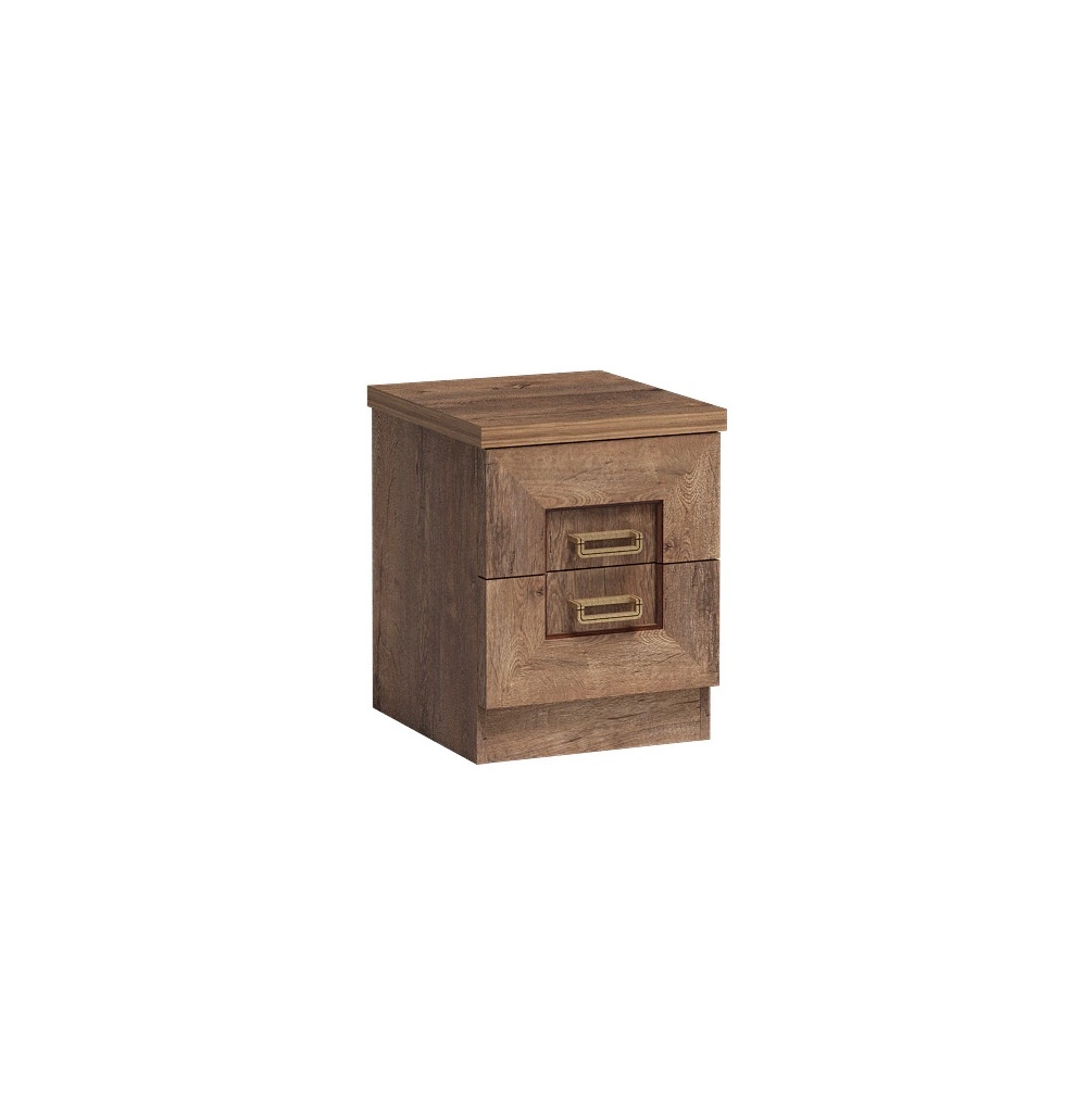 Szafka nocna Tade dąb lefkas elegancki styl szafka z szufladami wzbogacona o metalowe złote uchywty idealna szafka nocna do sypialni