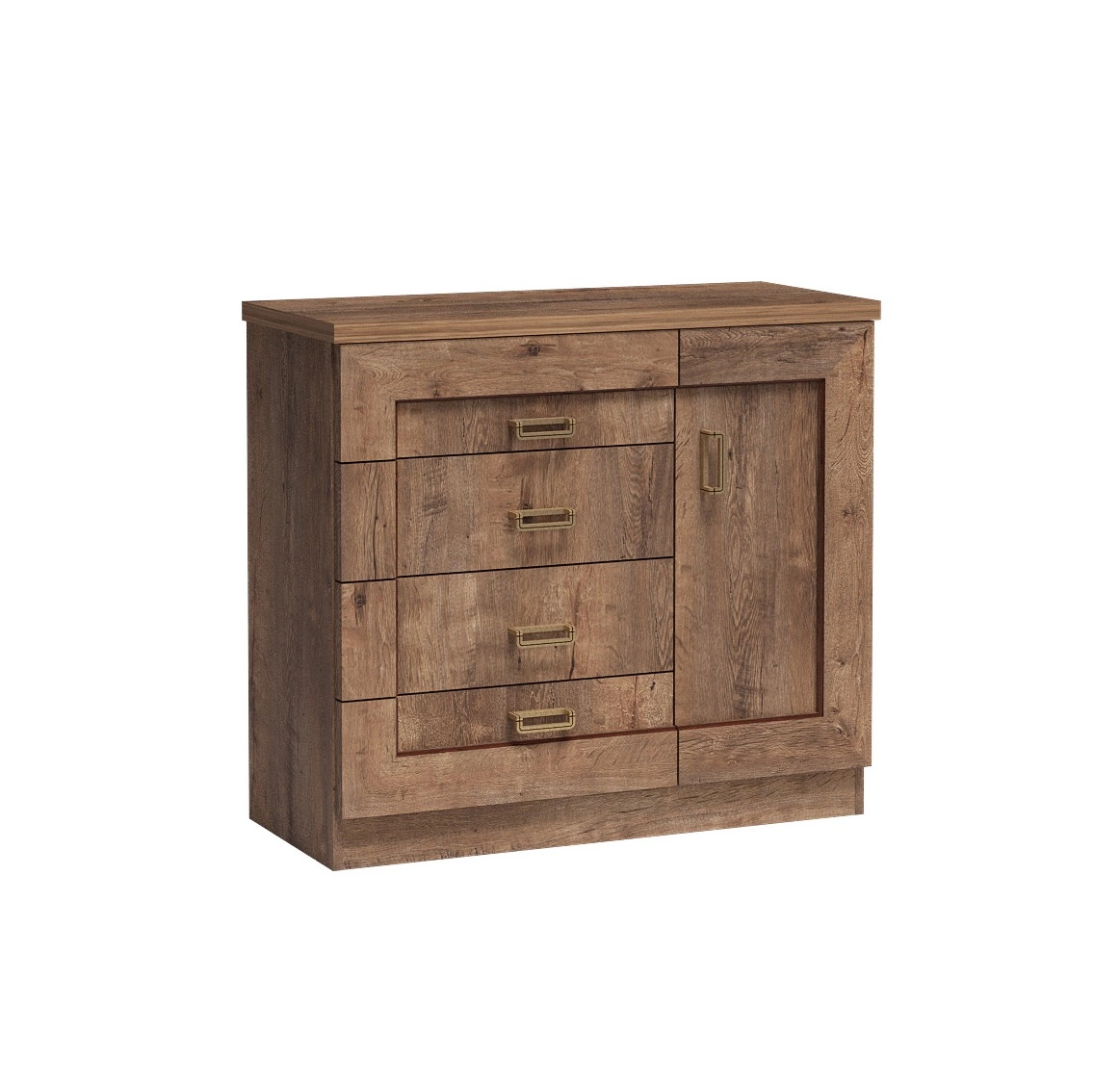 Komoda z szufladami Tade 100 cm w kolorze dąb lefkas to klasyczny design mebla, który stanie się stylowym wykończeniem wnętrza.
