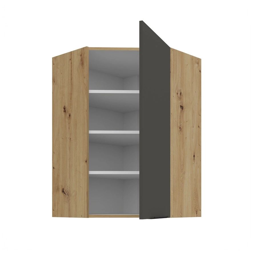 Szafka kuchenna narożna wisząca Aversa Ar w kolorze dąb artisan / grafit należy do kategorii mebli kuchennych modułowych, z których można utworzyć dowolne zestawy.