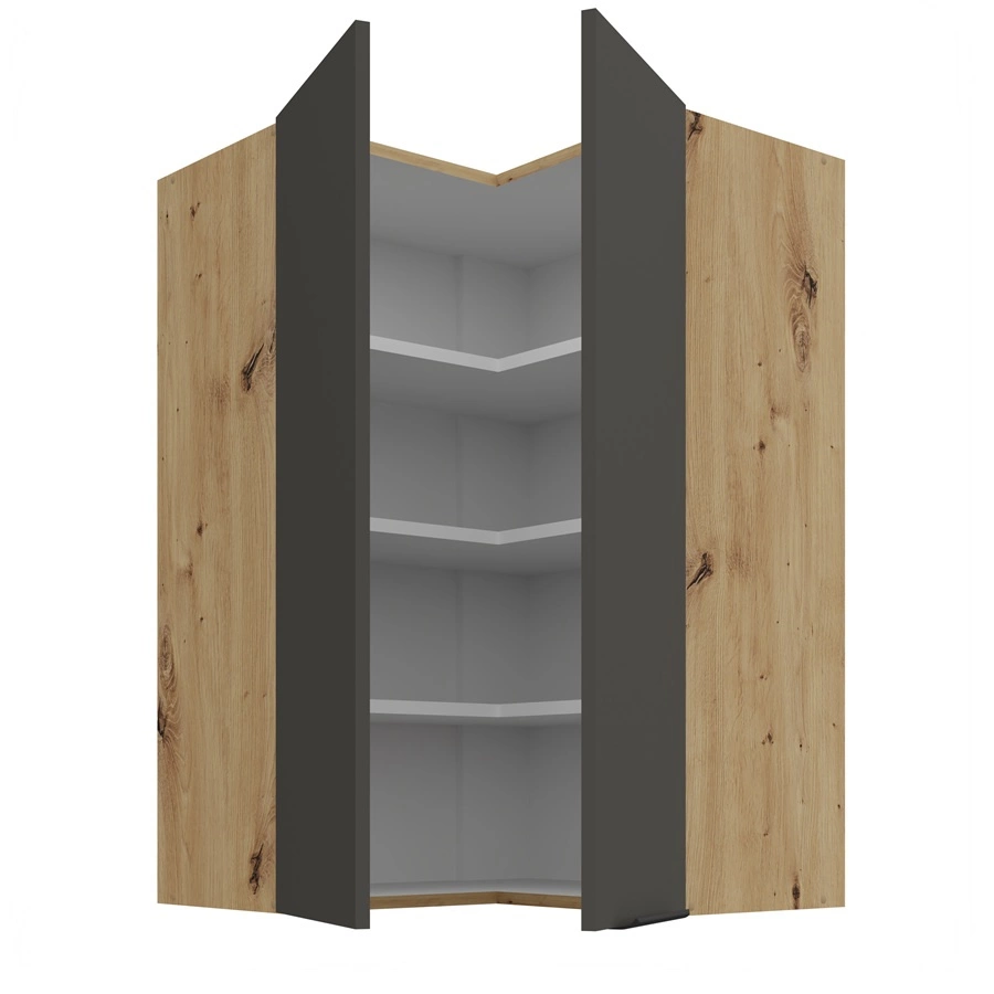 Szafka kuchenna narożna wisząca Aversa Ar w kolorze dąb artisan / grafit należy do kategorii mebli kuchennych modułowych, z których można utworzyć dowolne zestawy.