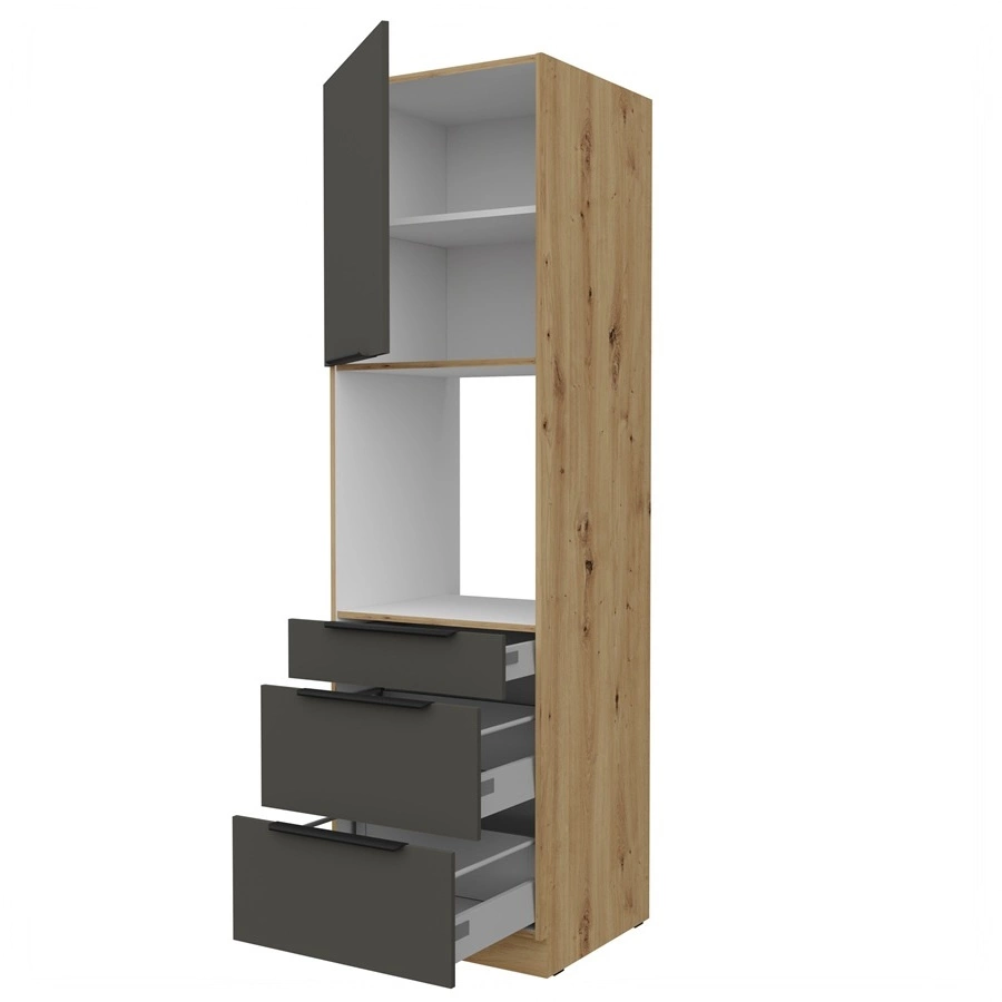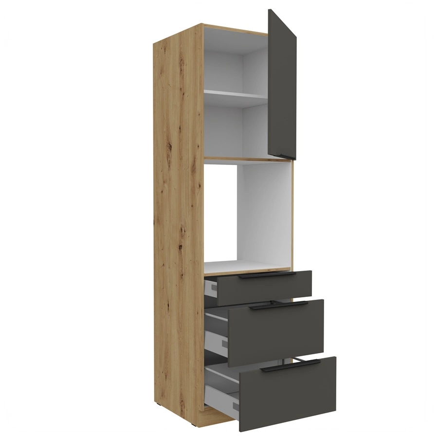 Słupek kuchenny do zabudowy piekarnika 60 cm Aversa Ar w kolorze dąb artisan / grafit należy do kategorii mebli kuchennych modułowych, z których można utworzyć dowolne zestawy.
