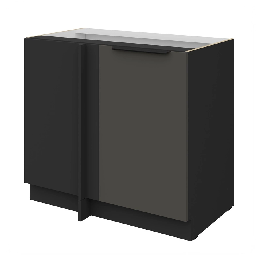Szafka kuchenna narożna dostawiana Aversa Bl w kolorze czarny / grafit należy do kategorii mebli kuchennych modułowych, z których można utworzyć dowolne zestawy.