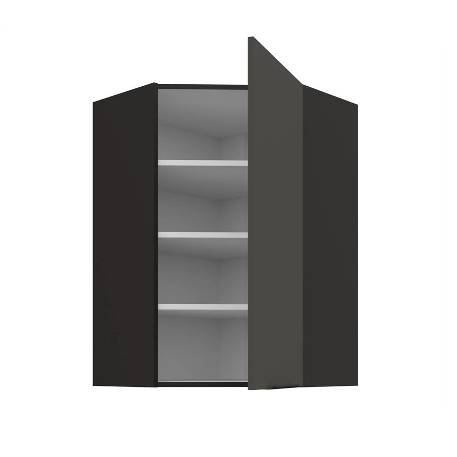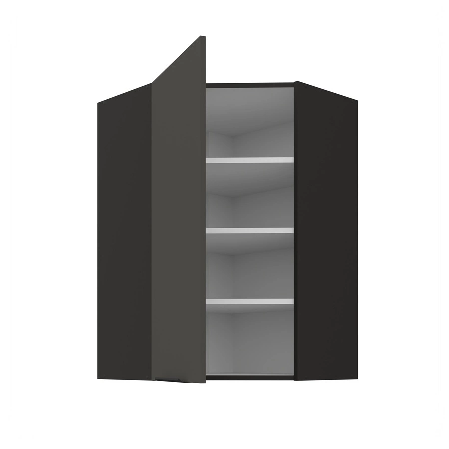 Szafka kuchenna narożna wisząca Aversa Bl w kolorze czarny / grafit należy do kategorii mebli kuchennych modułowych, z których można utworzyć dowolne zestawy.