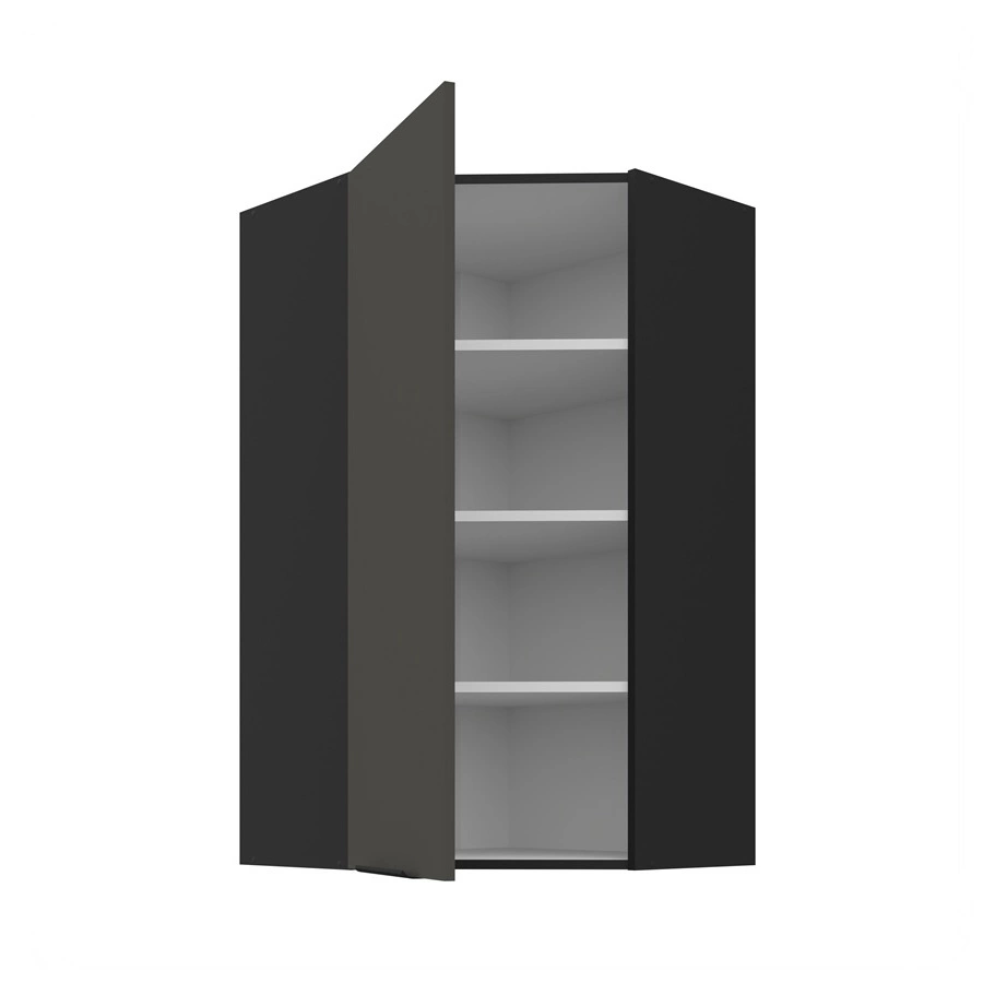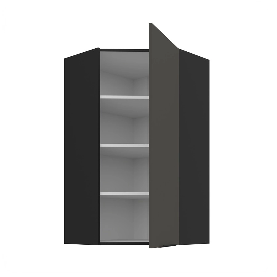 Szafka kuchenna narożna wisząca Aversa Bl w kolorze czarny / grafit należy do kategorii mebli kuchennych modułowych, z których można utworzyć dowolne zestawy.