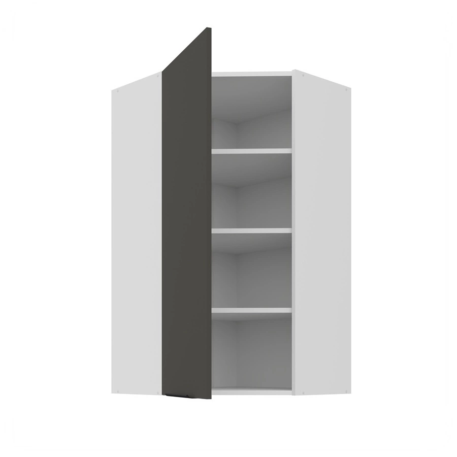 Szafka kuchenna narożna wisząca Aversa Wh w kolorze biały / grafit należy do kategorii mebli kuchennych modułowych, z których można utworzyć dowolne zestawy.
