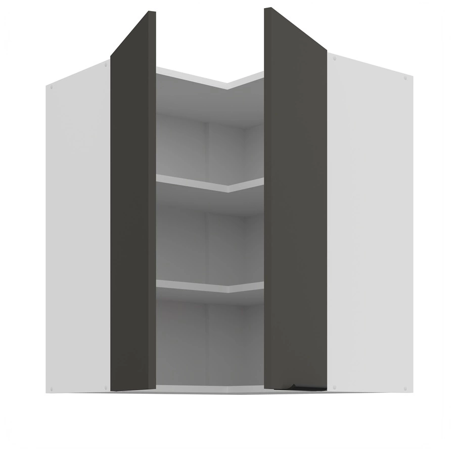 Szafka kuchenna narożna wisząca Aversa Wh w kolorze biały / grafit należy do kategorii mebli kuchennych modułowych, z których można utworzyć dowolne zestawy.