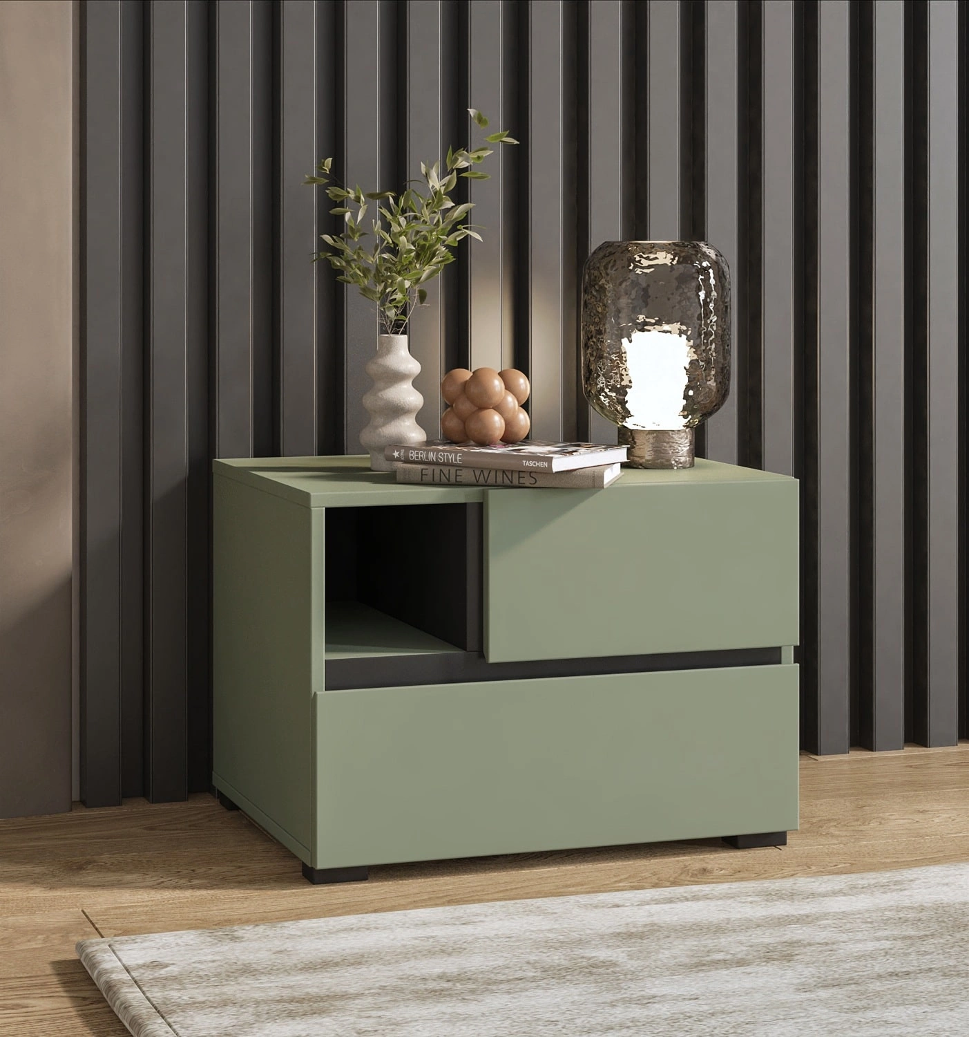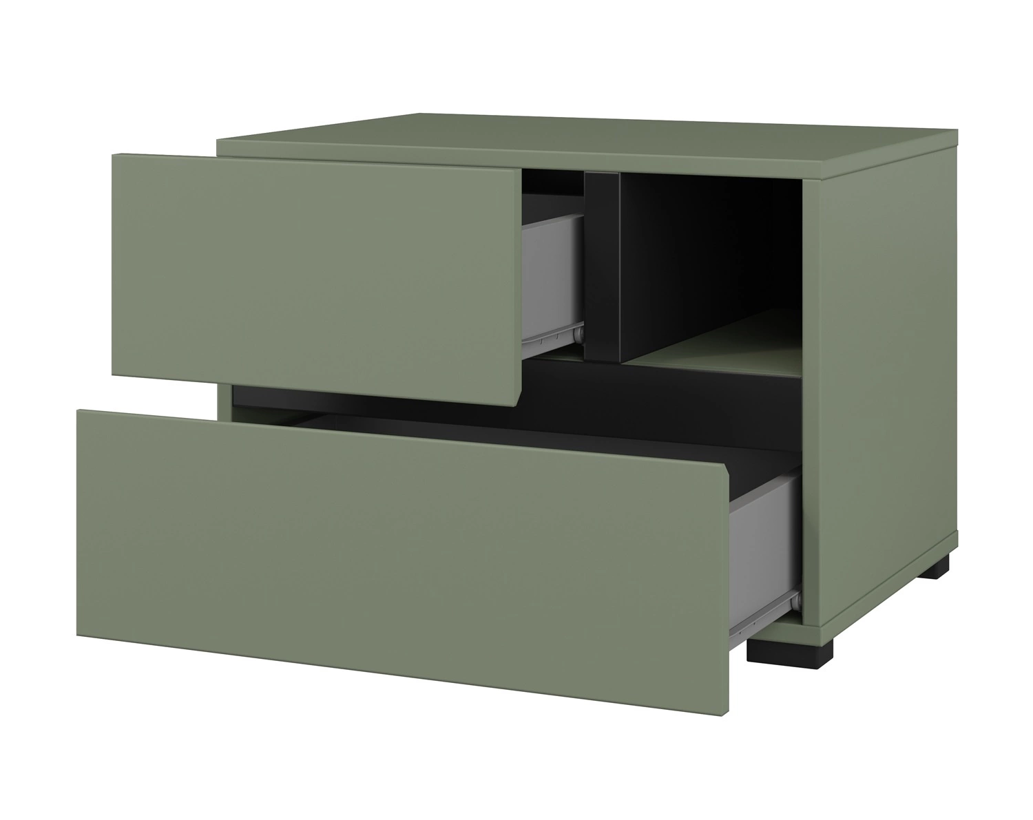 Szafka nocna Cross zielona szafka z szufladami do sypialni nowoczesny design prosta forma pojemne szuflady