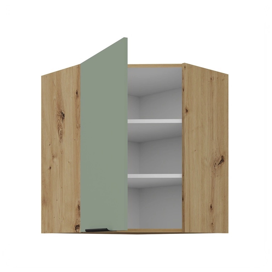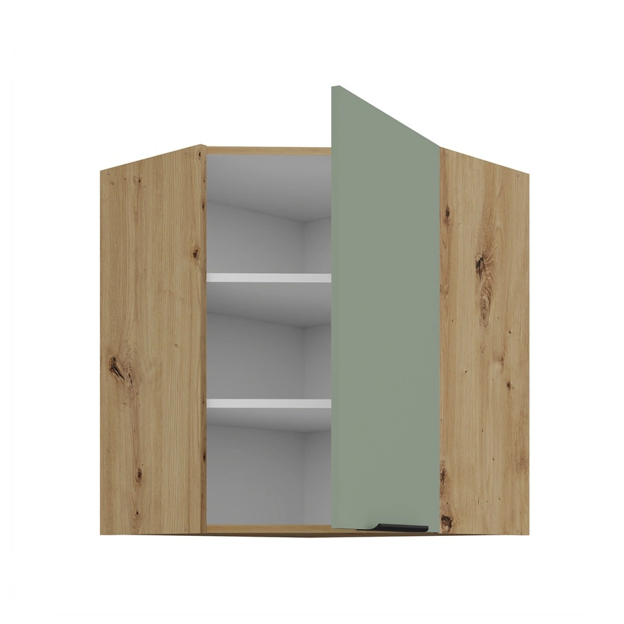 Szafka kuchenna narożna wisząca Treviso Ar w kolorze dąb artisan / aquamarine należy do kategorii mebli kuchennych modułowych, z których można utworzyć dowolne zestawy.