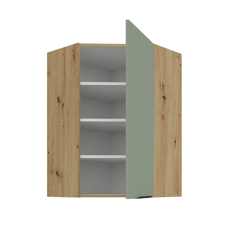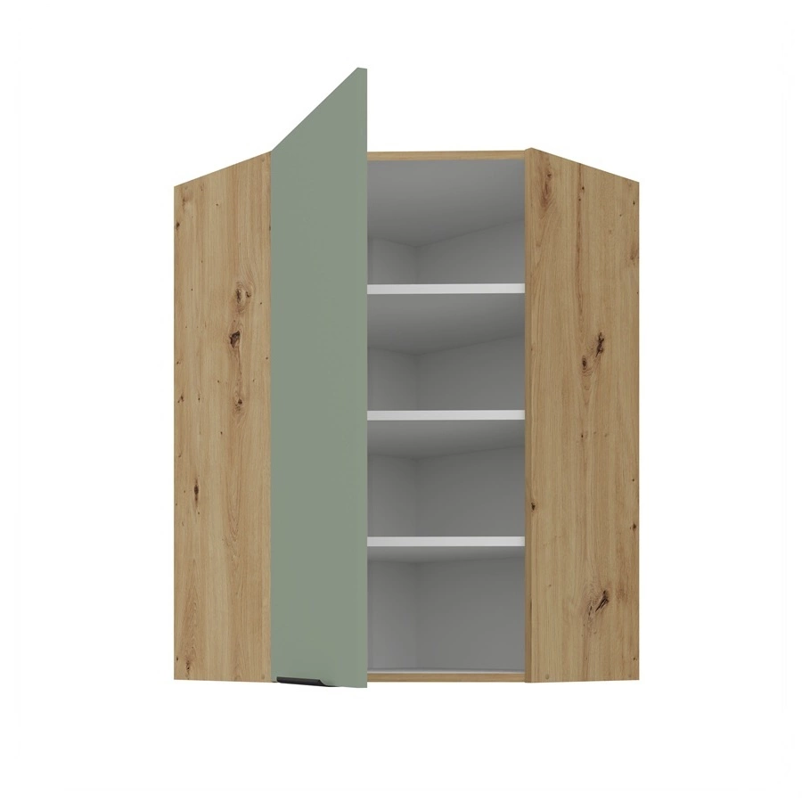 Szafka kuchenna narożna wisząca Treviso Ar w kolorze dąb artisan / aquamarine należy do kategorii mebli kuchennych modułowych, z których można utworzyć dowolne zestawy.