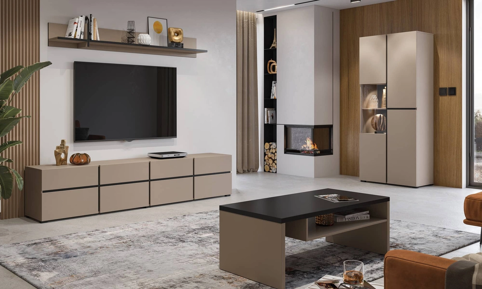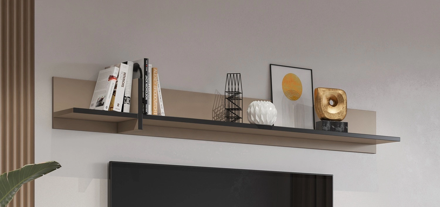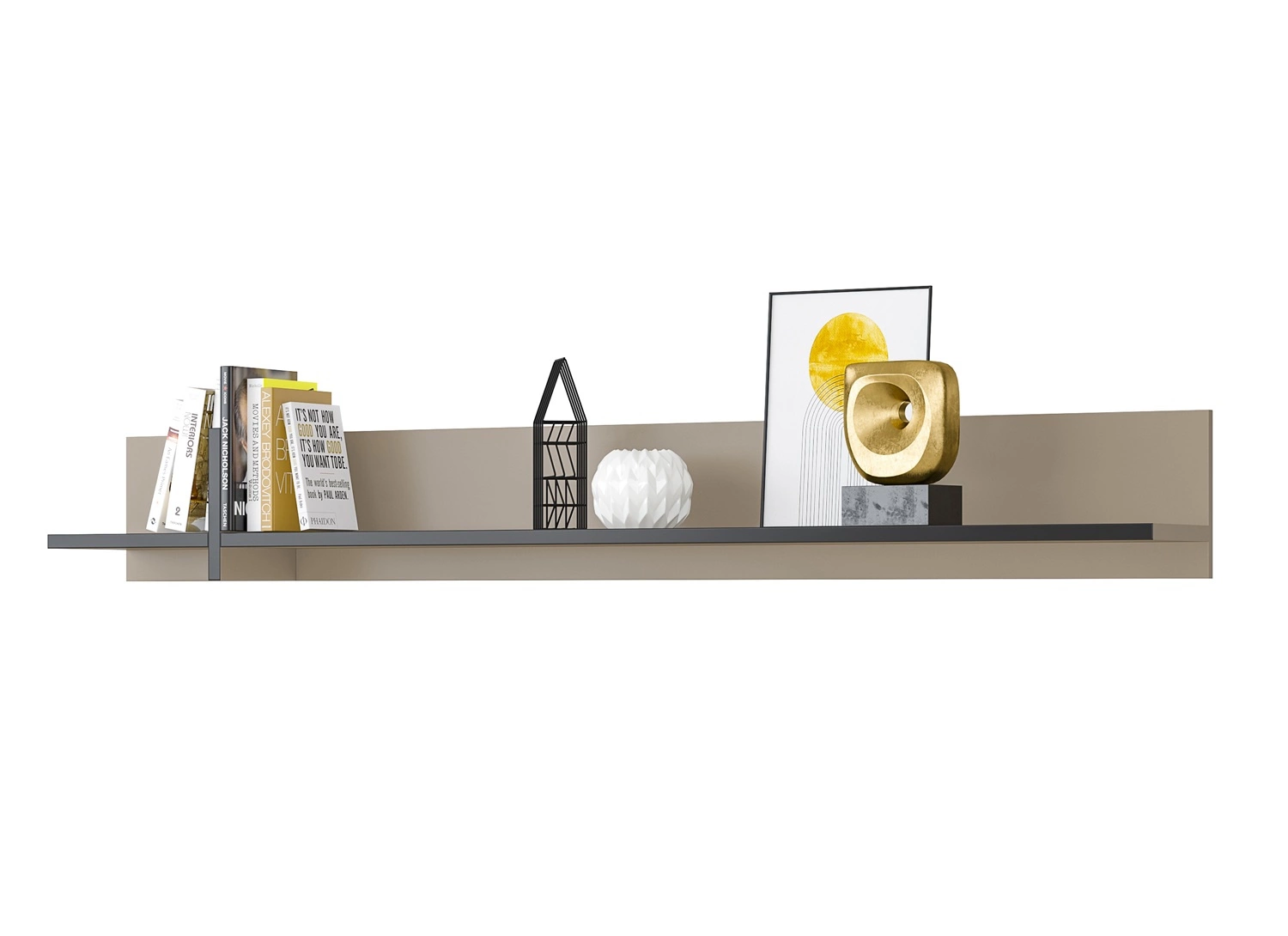 Półka Cross 180 cm ciemny beżowy prosta forma w nowoczesnym wydaniu praktyczna półka na ścianę do salonu jadalni lub pokoju dziennego