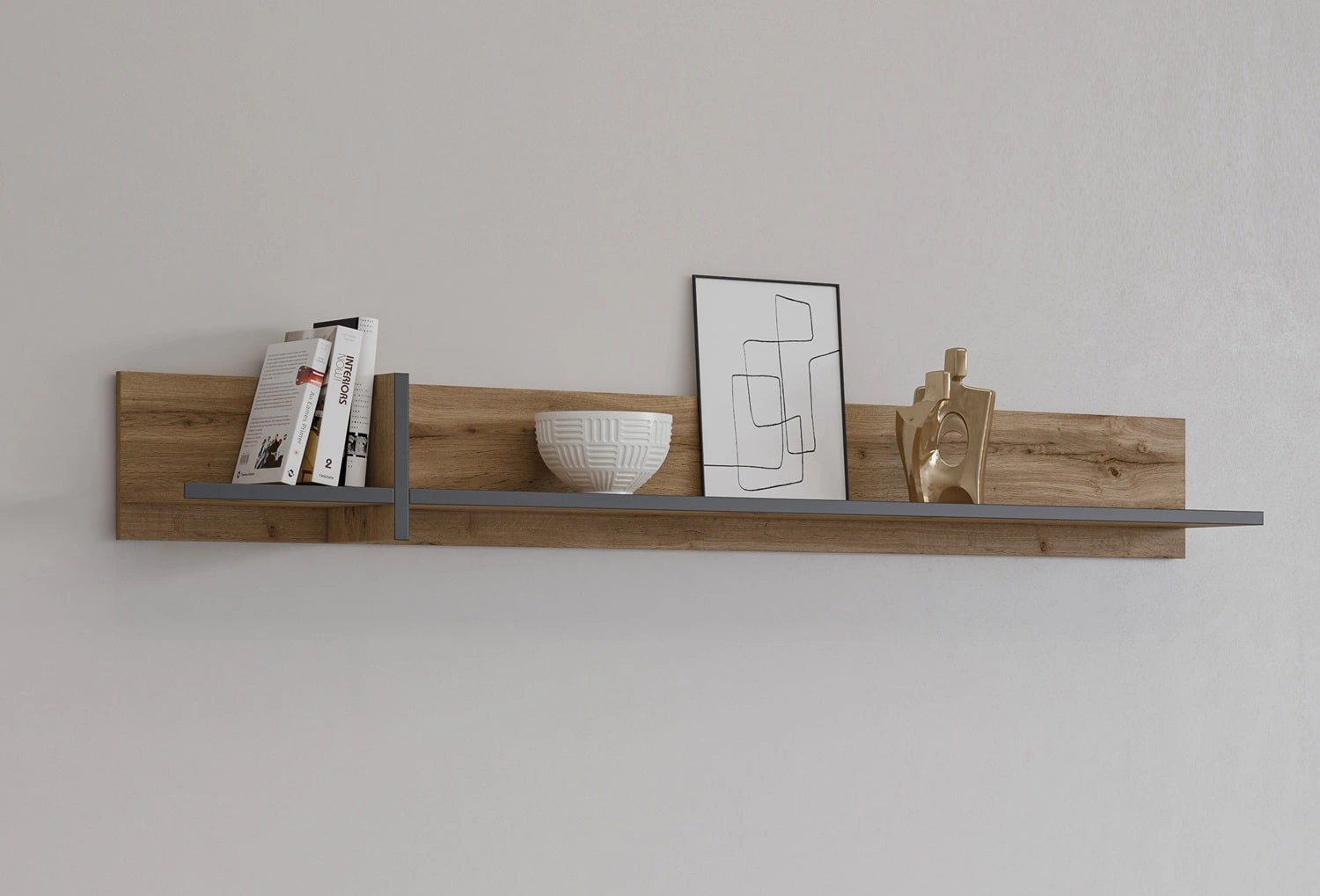 Półka Cross 180 cm dąb wotan prosta forma w nowoczesnym wydaniu praktyczna półka na ścianę do salonu jadalni lub pokoju dziennego