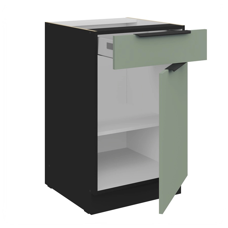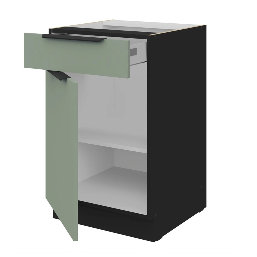 Szafka kuchenna stojąca z szufladą i półką Treviso Bl 50 D 1F 1S BB fronty szafki kuchennej wykończone w technologii anti fingerprint