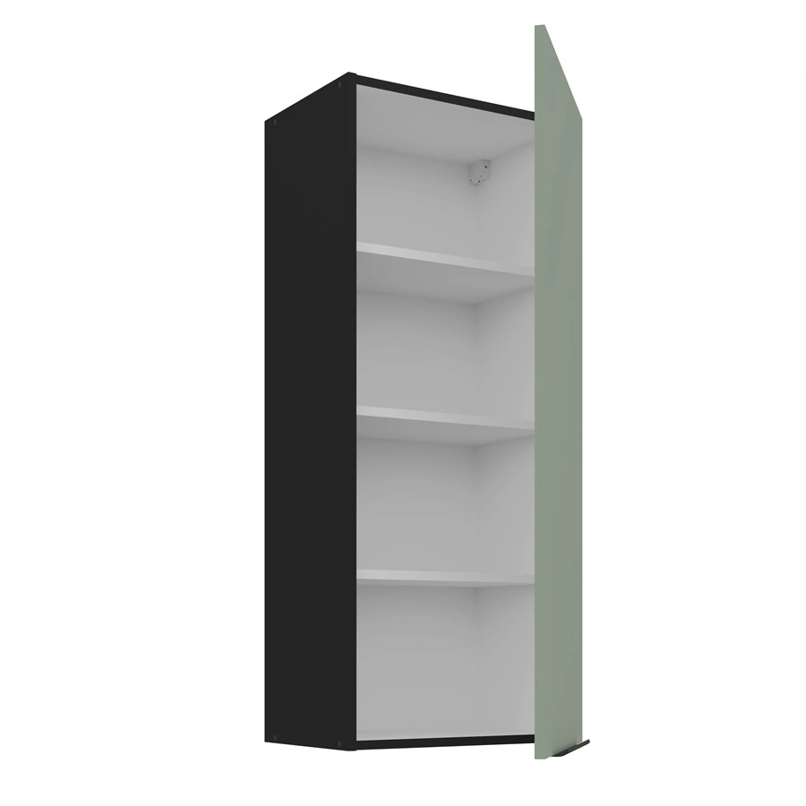 Trzy półki szafki kuchennej można wyciągnąć i uzyskać miejsce na wysokie przedmioty. Drzwi są uniwersalne i można je zamontować po prawej lub po lewej stronie. Standardowym wyposażeniem szafki kuchennej są zawiasy z systemem cichego domykania. Spowalniacze zwiększają komfort i bezpieczeństwo użytkowania mebli.