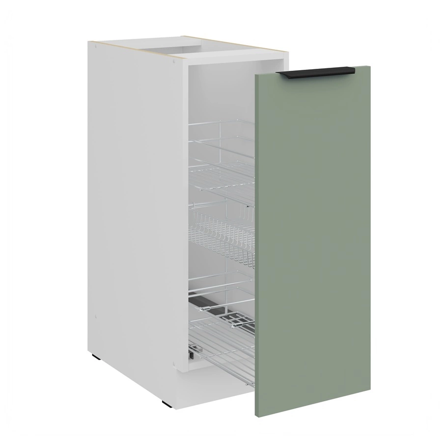 Szafka kuchenna Treviso Wh jest wyposażona w dwupoziomowy, metalowy kosz cargo.