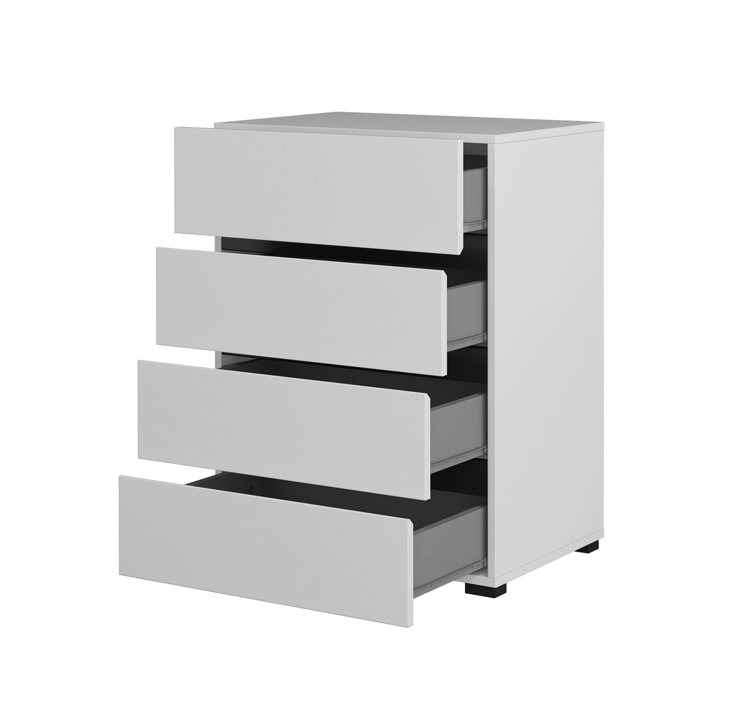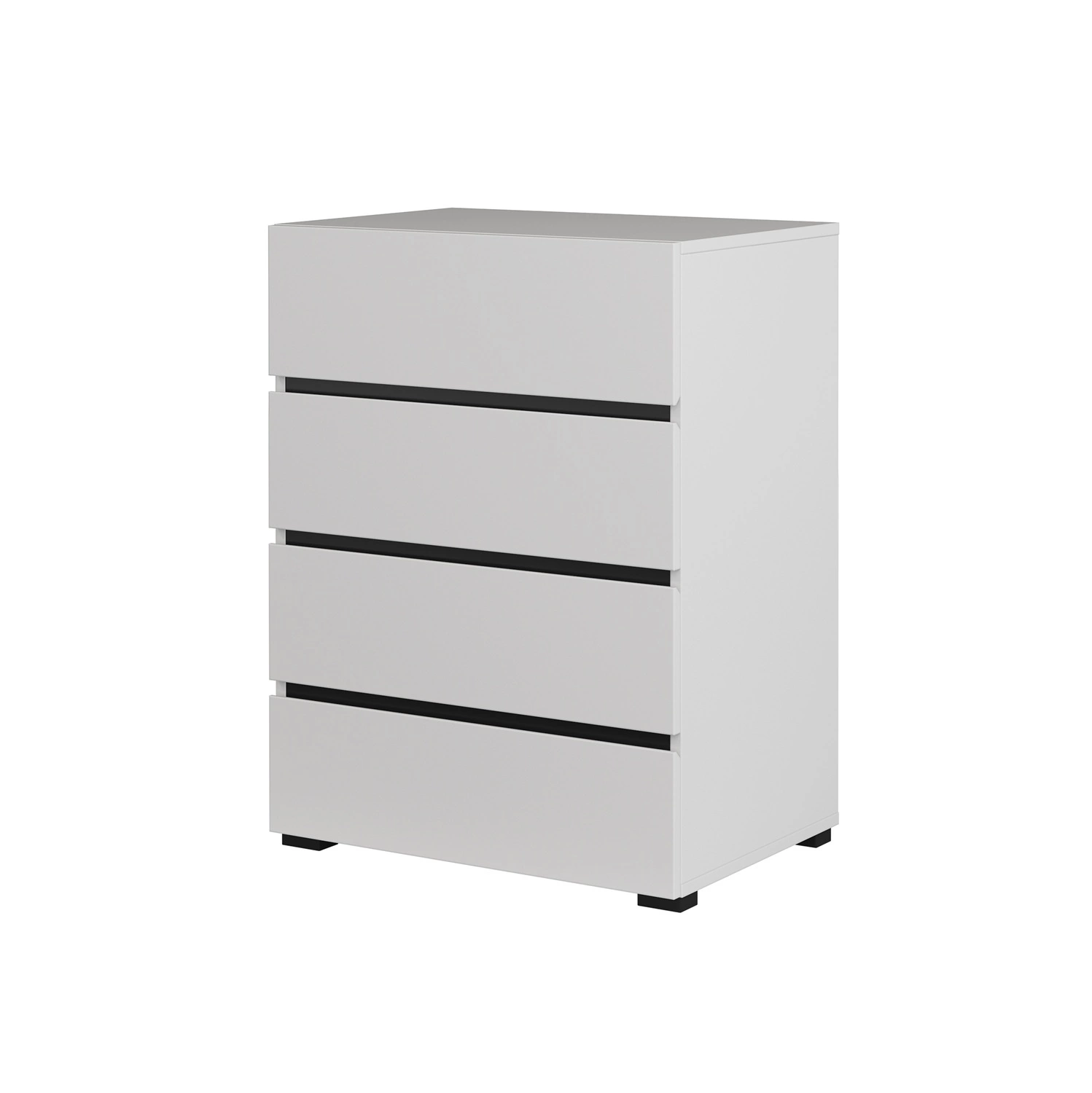 Zestaw mebli Cross zachwyci wszystkich miłośników wyrafinowanych aranżacji. Meble wyróżniają się prostotą oraz elegancją, a także zaskakują szeroką funkcjonalnością. Oryginalna kolorystyka i geometryczny kształt stworzy niepowtarzalny klimat w każdym wnętrzu. Kultowa biel znakomicie współgra z wstawkami w kolorze czarnym nadając meblom nowoczesnego wyglądu i kontrastu. Takie zestawienie kolorystyczne doskonale oddaje unikatowy charakter meblon. Nietuzinkowym wykończeniem frontów mebli są subtelnie frezowane uchwyty.