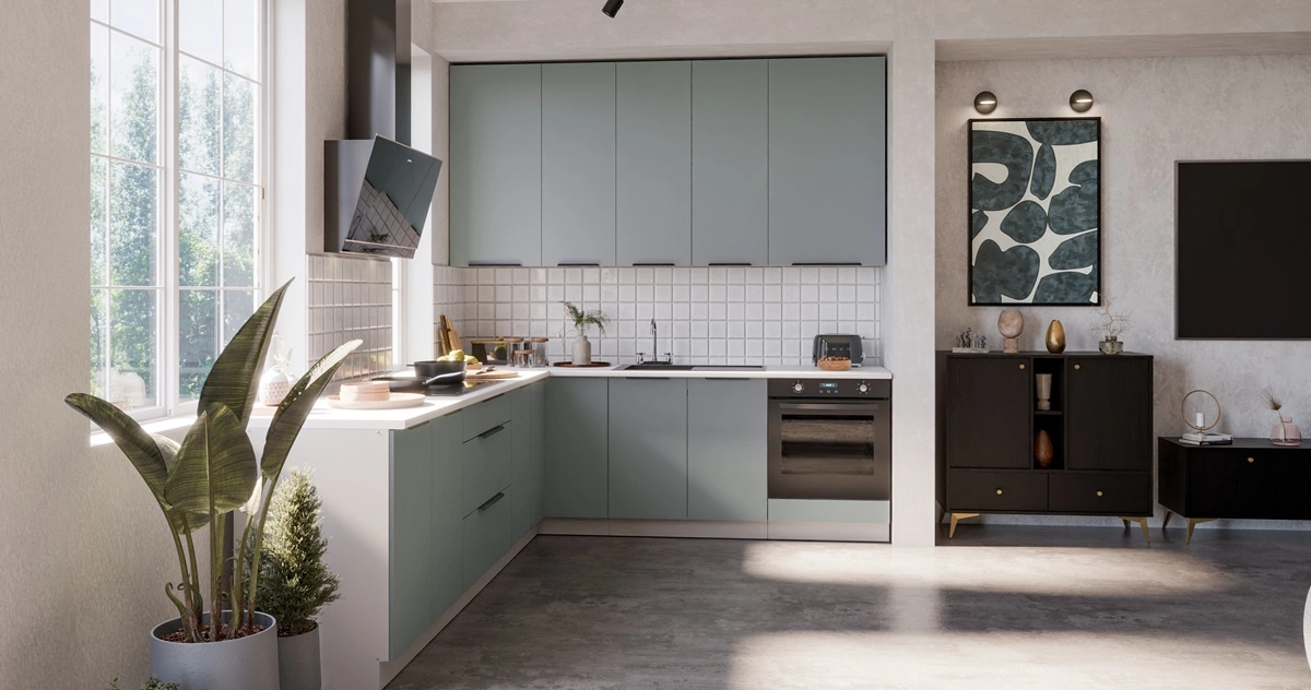 Korpusy i fronty szafek kuchennych zostały wykonane z wysokiej jakości płyty laminowanej o grubości 16 mm. Zaletą tego rodzaju materiałów jest wysoka odporność na wpływ zewnętrznych czynników takich jak para wodna, wysoka temperatura, wilgoć, rozlane ciecze. Użyty materiał jest także odporny na przypadkowe uszkodzenia. Stylowym dopełnieniem frontów szafek kuchennych są czarne, metalowe uchwyty krawędziowe, które poza swoją podstawową funkcją podkreślają również nowoczesny design szafek.