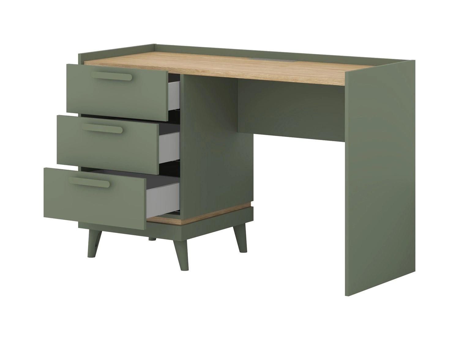 Biurko z szufladami Scandia w kolorze zielonym / dąb olejowany to przepis na stylowy oraz funkcjonalny mebel do biura czy pokoju młodzieżowego!