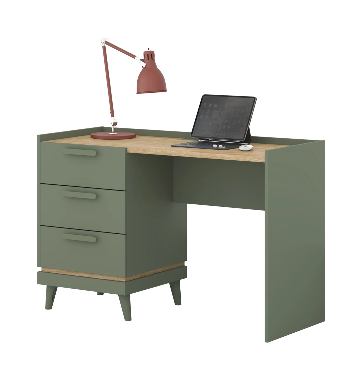 Biurko z szufladami Scandia 120 cm zielone / dąb olejowany stylowe oraz funkcjonalne do gabinetu biura lub pokoju młodzieżowego