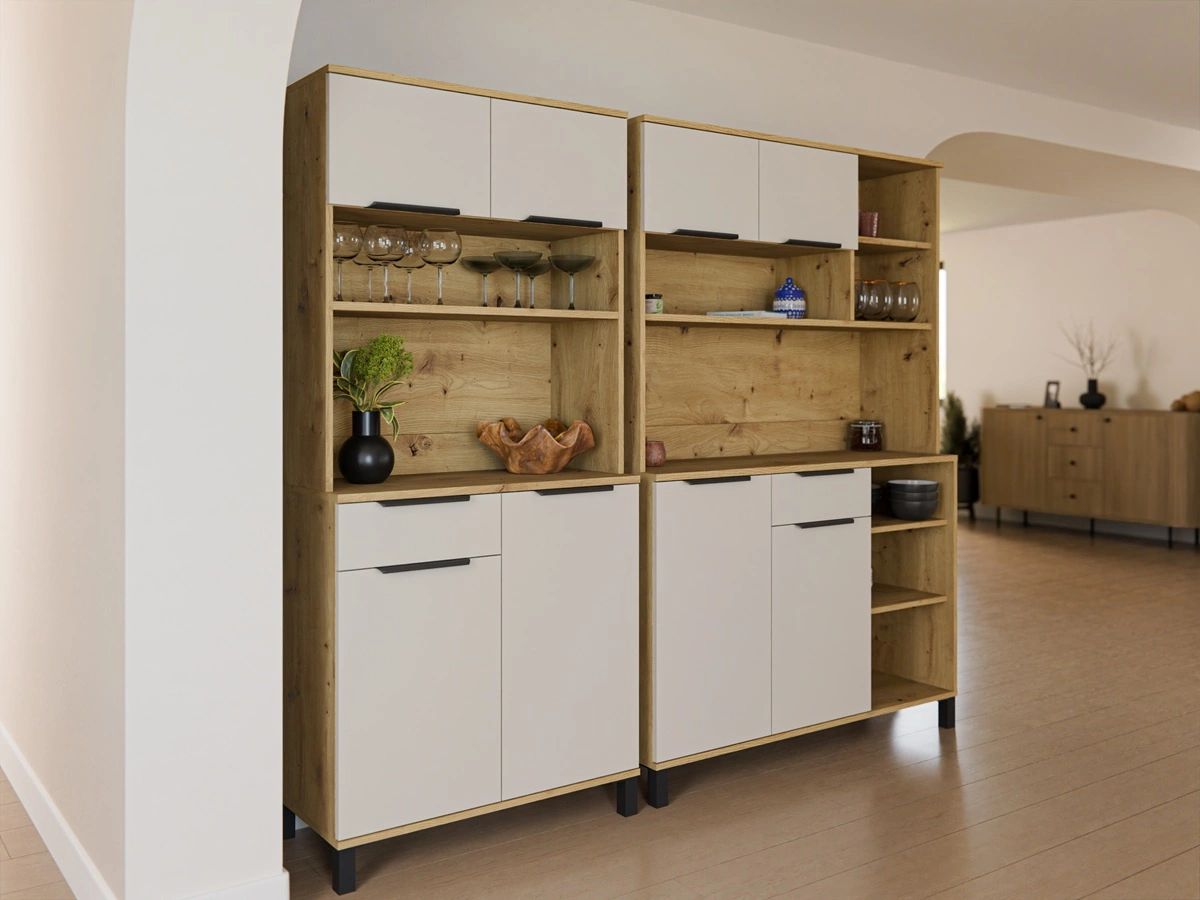 Stylowy bufet kuchenny Soela to świetna propozycja wyposażenia mniejszej kuchni gdzie oszczędność miejsca jest głównym priorytetem. Kredens kuchenny będzie również komfortowym rozwiązaniem do stworzenia funkcjonalnego aneksu kuchennego w biurze.