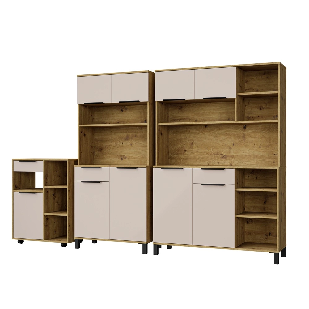 Zestaw mebli kuchennych Soela w kolorze dąb artisan / beżowy to propozycja gotowego zestawu, który dopasuje się do wnętrza każdej kuchni.