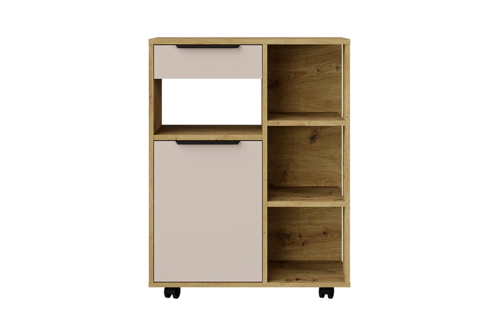 Zestaw mebli kuchennych Soela 270 cm dąb artisan / beżowy zestaw z szafką na kółkach idealne do aranżacji małego aneksu kuchennego