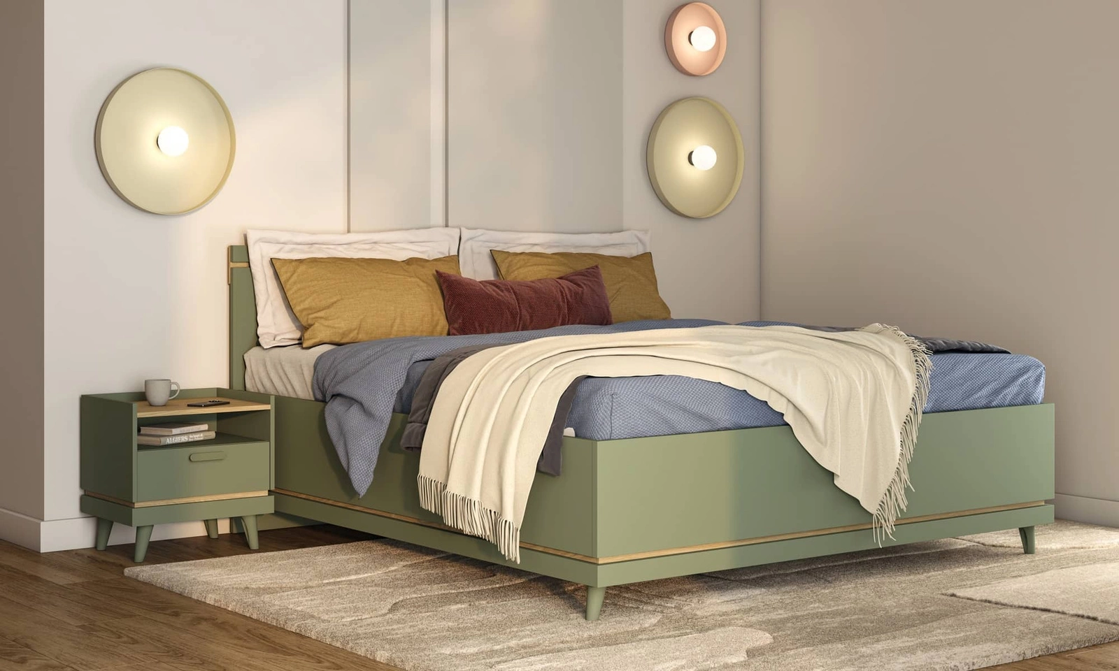 Łóżko Scandia zachwyci wszystkich miłośników wyrafinowanych aranżacji. Mebel wyróżnia się prostotą oraz elegancją, a także zaskakuje szeroką funkcjonalnością. Modna zieleń harmonijnie łączy się z wstawkami w odcieniu dąb olejowany nadając meblom wyjątkowego wyglądu i niepowtarzalnego charakteru. Takie zestawienie kolorystyczne doskonale oddaje unikatowy charakter łóżka. Dzięki wysokiemu oparciu łóżko zyskuje kolejną funkcję. Można wygodnie siedzieć na łóżku, np. oglądając telewizję, pracując przy laptopie lub czytając książki. Konstrukcję mebla urozmaicono nogami wykonanych z wytrzymałego tworzywa sztucznego.