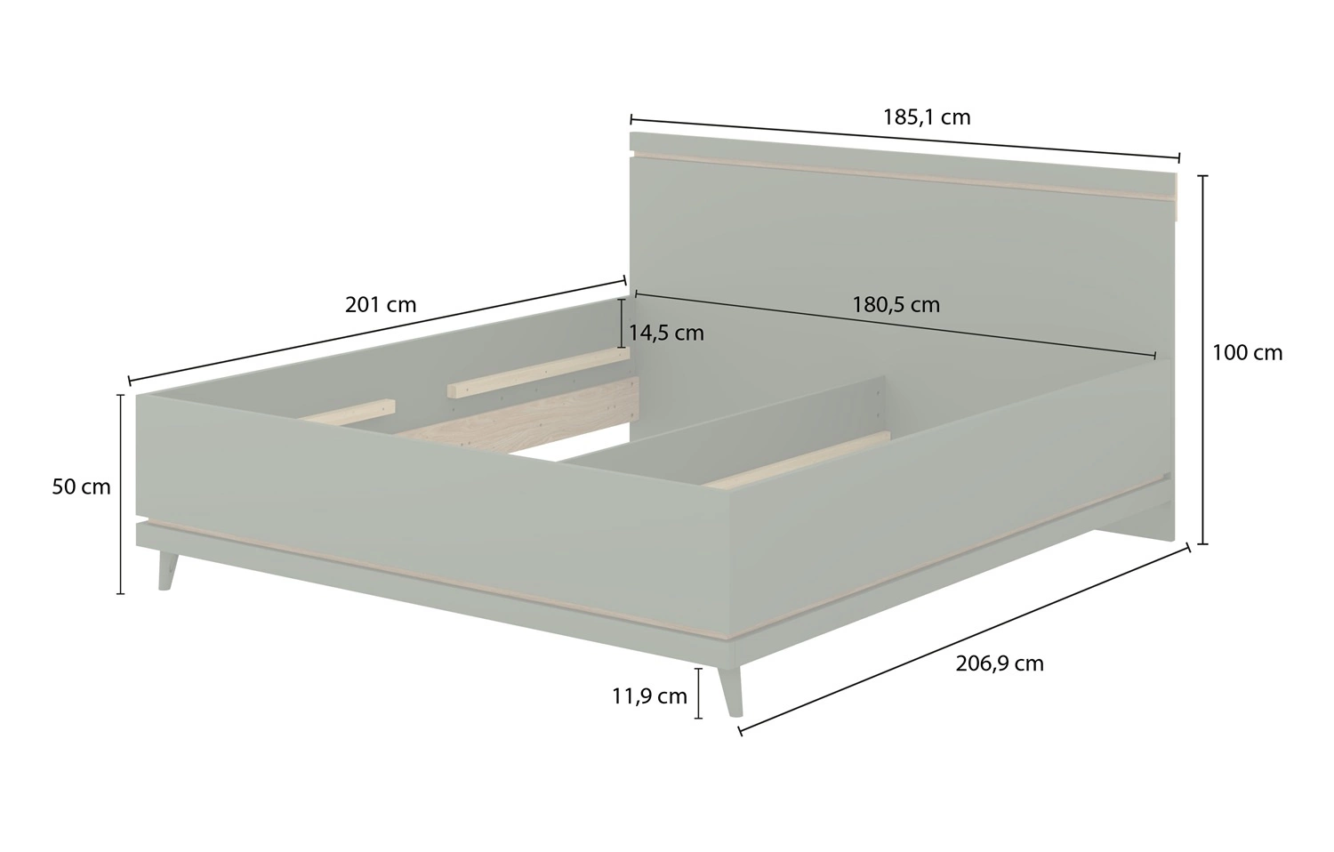 Łóżko Scandia 180x200 cm w kolorze zielonym to prosty i elegancki design, który idealnie wpisuje się w obecne trendy wnętrzarskie.