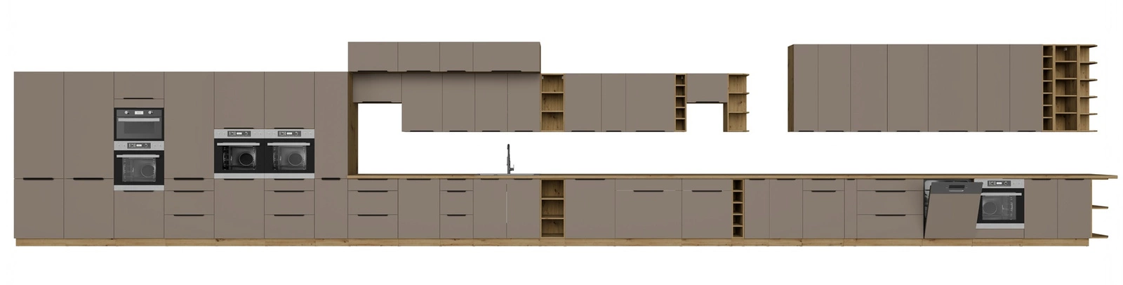 Szafka kuchenna z kolekcji Fiuggi Ar została zaprojektowana z myślą o wszystkich, którzy cenią sobie estetykę oraz poszukują funkcjonalnych rozwiązań do swojej kuchni. Prosta bryła, gładka powierzchnia oraz wyjątkowy kolor frontów połączony z eleganckim odcieniem korpusów sprawia, że szafki kuchenne Fiuggi Ar wpasują się we wnętrze w każdym stylu. Meble kuchenne Fiuggi Ar charakteryzują się solidną jakością wykonania, a także użytkowym wzornictwem. Dodatkową zaletą mebli kuchennych Fiuggi Ar są fronty wykonane w innowacyjnej technologii Anti Fingerprint. Użyta w produkcji mebli technologia zapobiega powstawaniu widocznych śladów dotyku oraz innych zabrudzeń pozwalając zachować perfekcyjny wygląd szafki kuchennej na lata. Meble modułowe do kuchni to produkty wykonane w trosce o komfort podczas codziennego użytkowania i długoletni, elegancki wygląd.