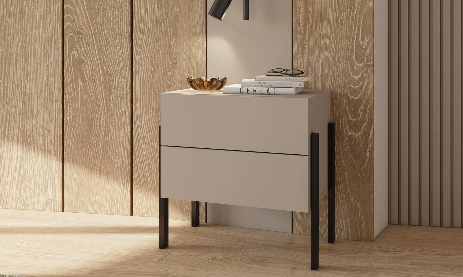 Szafka nocna z szufladami Jukon S w kolorze beżowym to idealne dopełnienie każdej sypialni lub pokoju młodzieżowego.